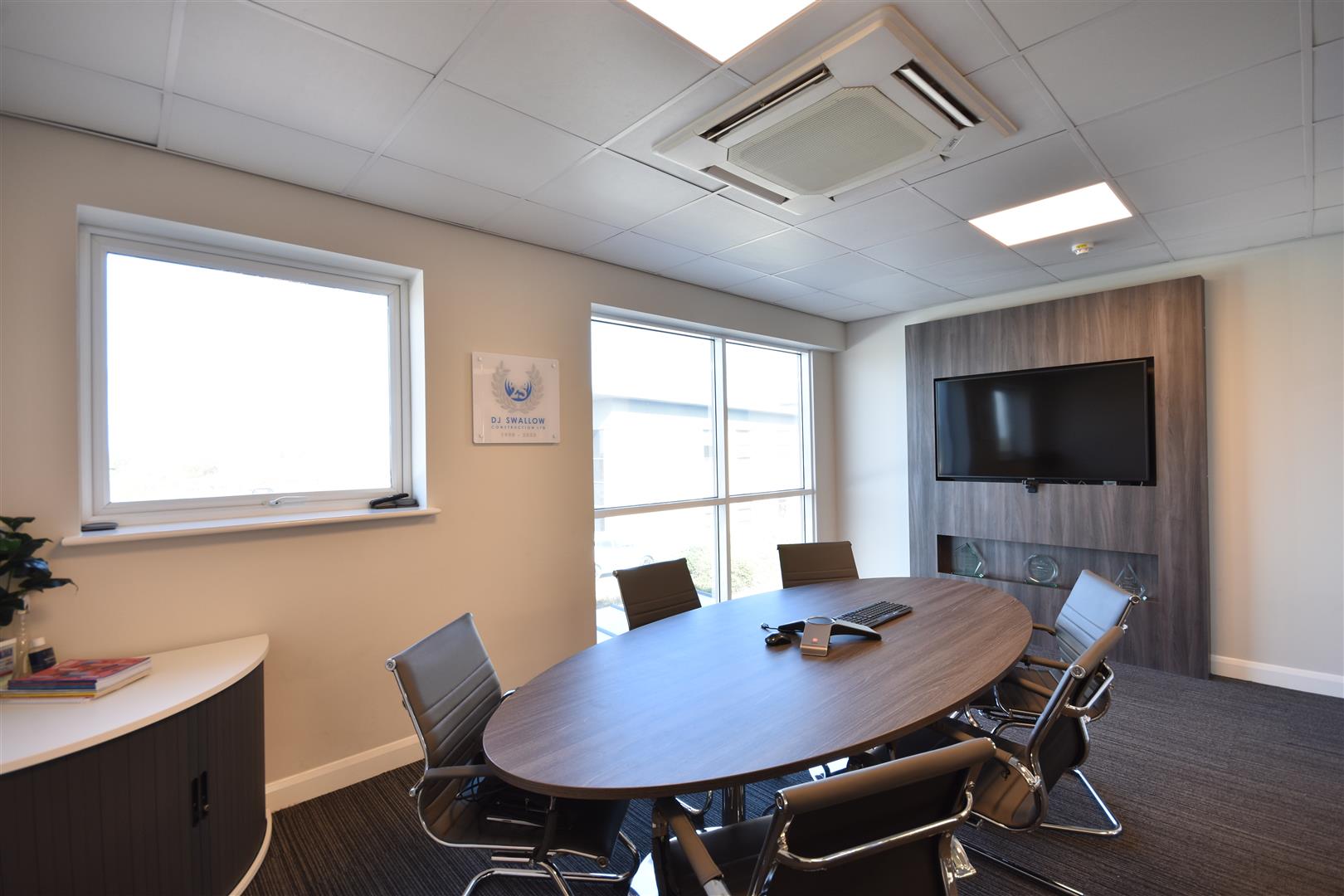 Meeting room, with separate air conditioning unit, provision for flat screen TV and picture window in the front elevation.