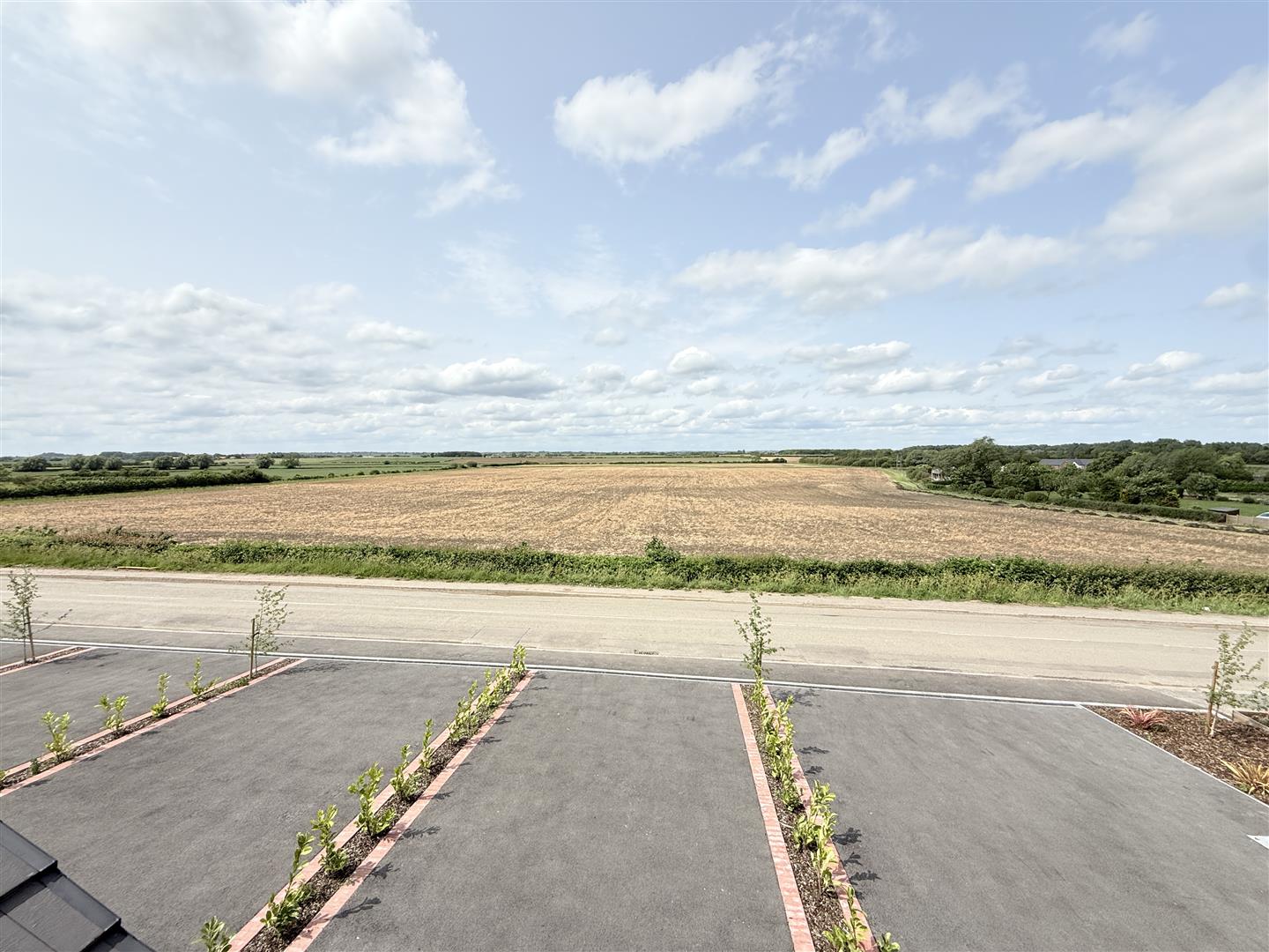 Exterior - The property is set back behind an open plan frontage which has been landscaped to maximise off road parking, having a central tarmacadam driveway with adjacent borders with inset shrubs and electric car charging point. To the rear of the property a courtesy gate gives access into the rear garden which offers a just off southerly aspect, having an initial paved terrace which links back into the living area of the kitchen and steps leading up onto what will be a lawned garden enclosed by feather edge board fencing. In addition there is exterior lighting and outside cold water tap.