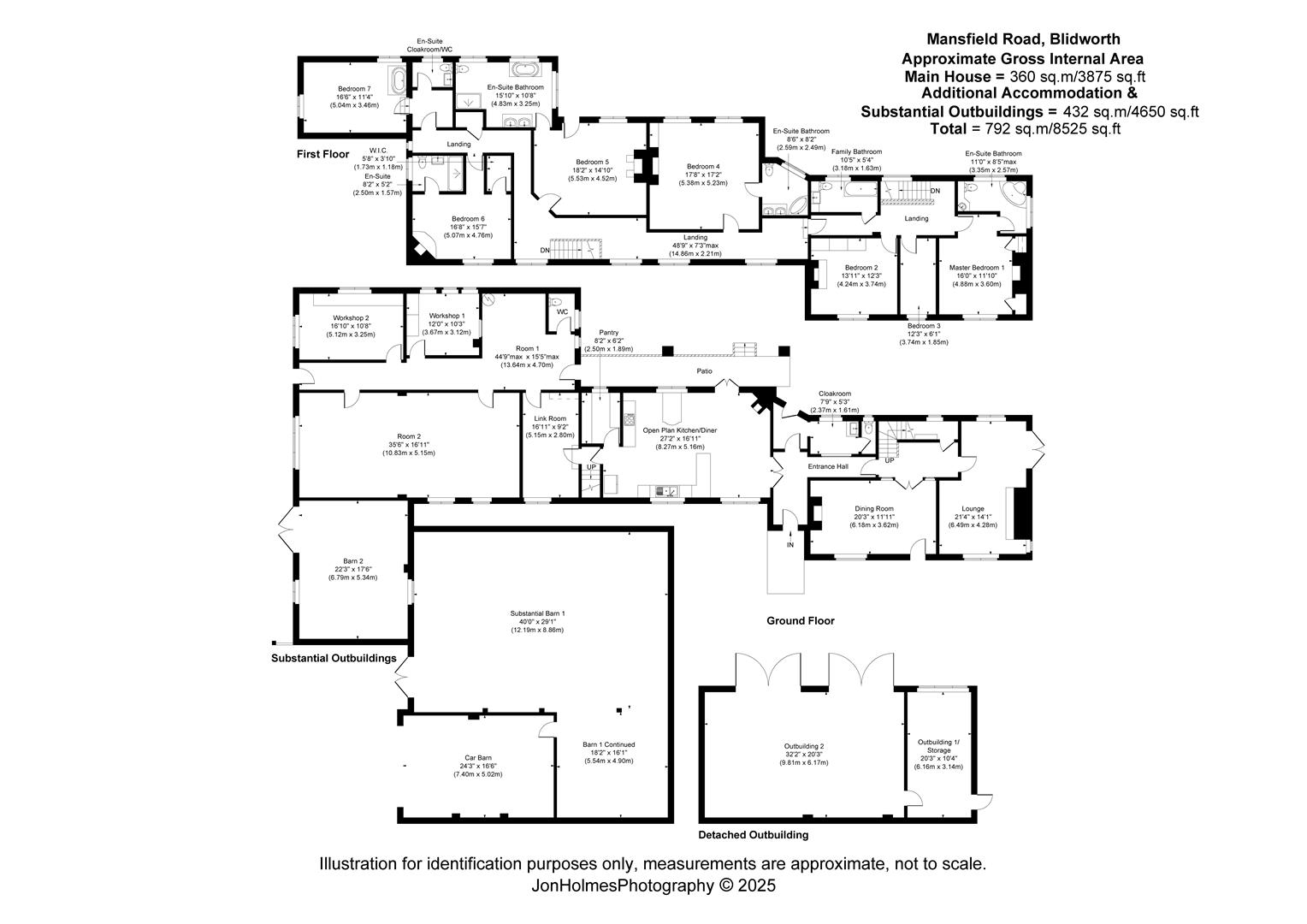 Our client has overseen a considerable amount of renovation and improvement to the property over the last eight years creating a substantial and versatile home with seven bedrooms and five en suites. The main house extends to 3,875 sq ft and the additional accommodation, workshops and outbuildings extend to 4,650 sq ft, totalling 8,525 sq ft. In our opinion the property has considerable scope and potential for various uses subject to planning such as a work from home business premises, a HMO, splitting the house into more than one dwelling and, conversion opportunities for all or some of the substantial outbuildings.