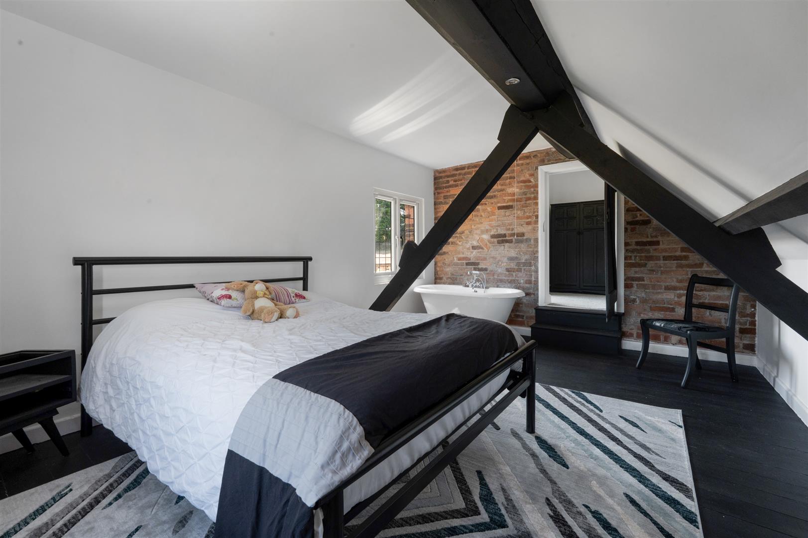 Bedroom 7 - 5.08m x 3.53m (16'8" x 11'7") - With feature beams with inset spotlights, painted wood floor, roll top bathtub with chrome mixer tap and shower handset. Double glazed windows to the side and rear elevations.