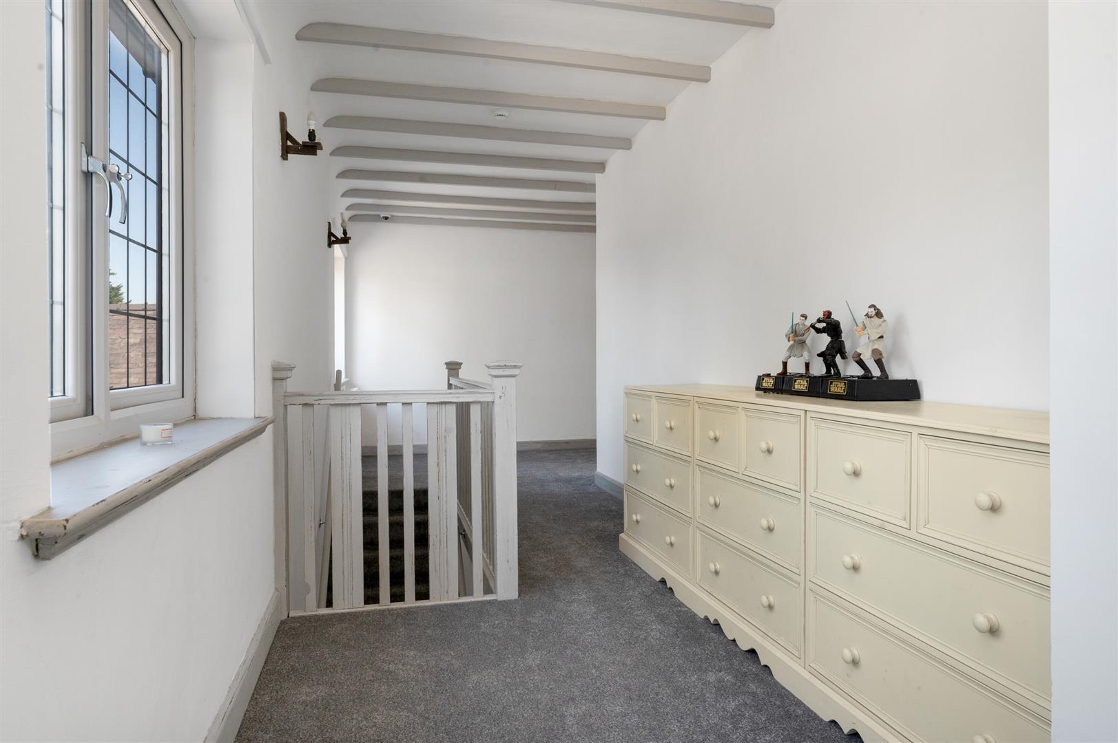 First Floor Landing - 3.81m x 2.74m (12'6" x 9'0") - Having lower level built-in storage cupboards, radiator, beamed ceiling and double glazed window to the rear elevation.