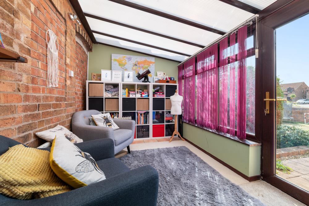 Conservatory - 3.66m x 2.51m (12' x 8'3") - A useful addition to the property providing a further versatile sitting room, having pitched polycarbonate roof, exposed internal brick elevation, electric heater, double glazed windows and exterior door into the garden.