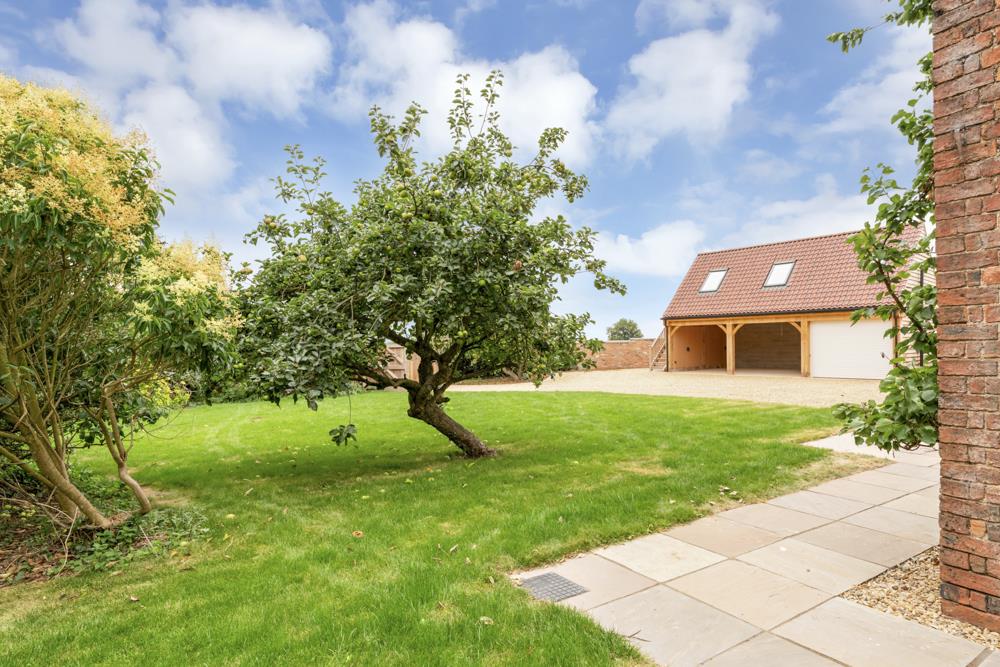 Exterior - The property occupies an attractive and deceptive corner plot with gardens to all sides offering a generous outdoor space. The gardens are already established with a variety of trees and shrubs, the final landscaping to be completed. Approached from the front is a substantial driveway providing a considerable level of off road in parking which, in turn, leads to an attractive oak framed car port providing three bays with the double width bay measuring 20'10" wide x 21'9" deep and having power and light and a separate enclosed garage.
