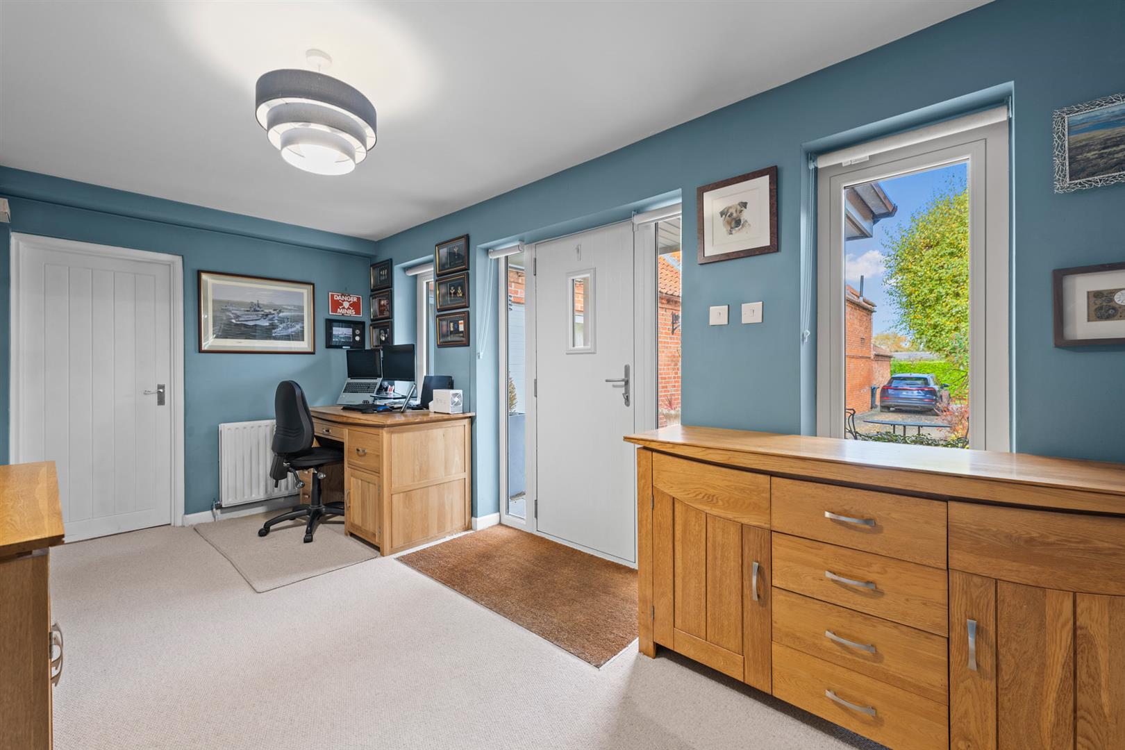 Exterior - The property occupies a pleasant, established, secluded plot tucked away off a small close right at the heart of the village, set well back behind a walled frontage beyond which lies a good level of off road parking and a level lawn with established borders with a range of trees and shrubs. The front door is approached by an initial terrace and, in turn, an attractive timber framed traditional style porch and the main entrance. The main gardens lie to the south and west and link back into the garden room providing a fantastic outdoor entertaining area which is mainly laid to lawn but with established trees and shrubs and a secluded courtyard area at the rear. The property is enclosed to all sides in the main by brick walls providing a secure outdoor space perfect for families.