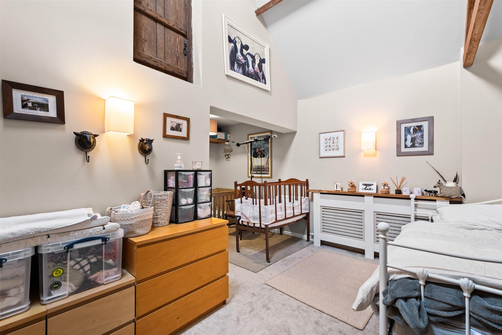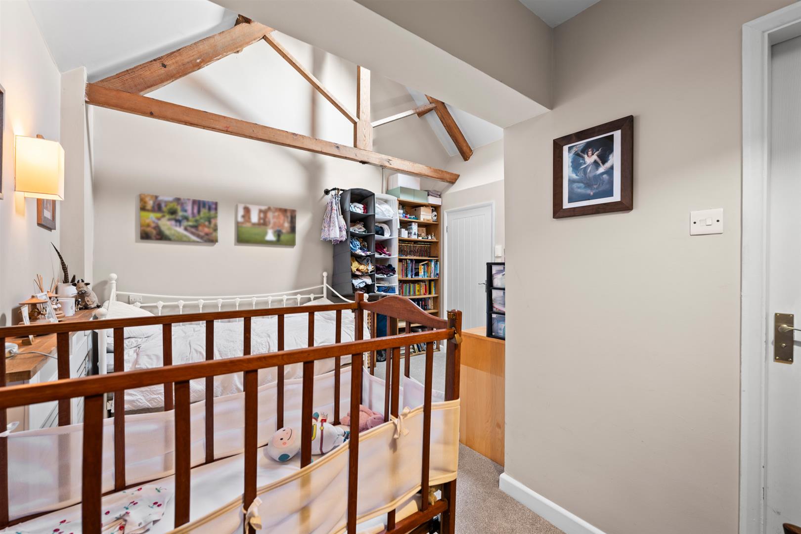 Bedroom 2 - 3.86m max x 5.03m max (12'8" max x 16'6" max) - A well proportioned L shaped double bedroom with Jack n' Jill ensuite facilities, providing an interesting space that could be utilised for both a bedroom or reception, the room having an initial full height vaulted ceiling with exposed king post, truss and purlin, shelved alcove, access to an elevated loft space above, central heating radiator concealed behind a feature cover and a further door leading through into: