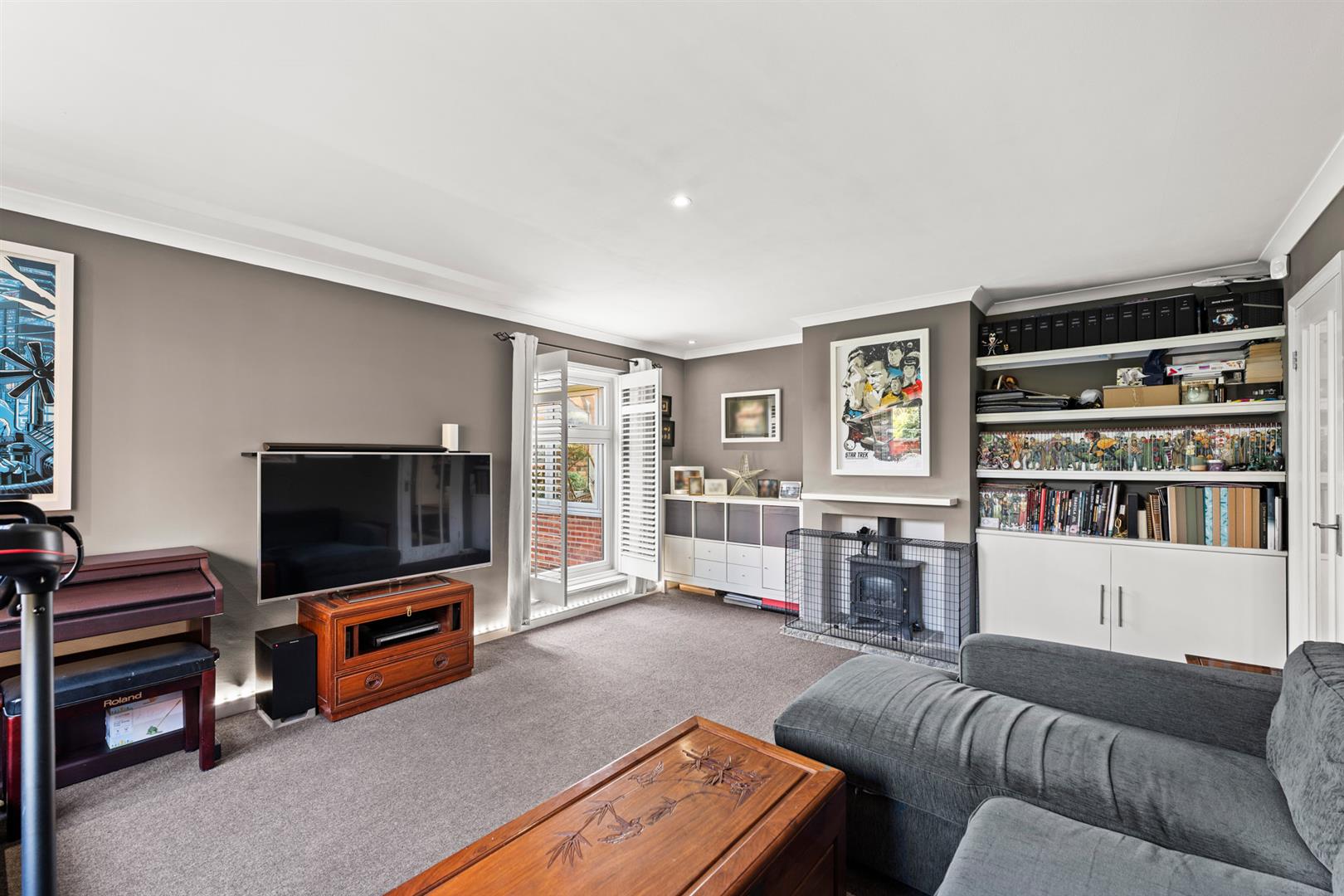 Main Sitting Room - 5.18m x 4.09m (17' x 13'5") - Benefitting from a dual aspect with double glazed windows to the front and side, the focal point of the room being a chimney breast with stone hearth, inset gas stove and shelved alcove to the side with low level storage cupboard. The room also having a coved ceiling and inset downlighters.