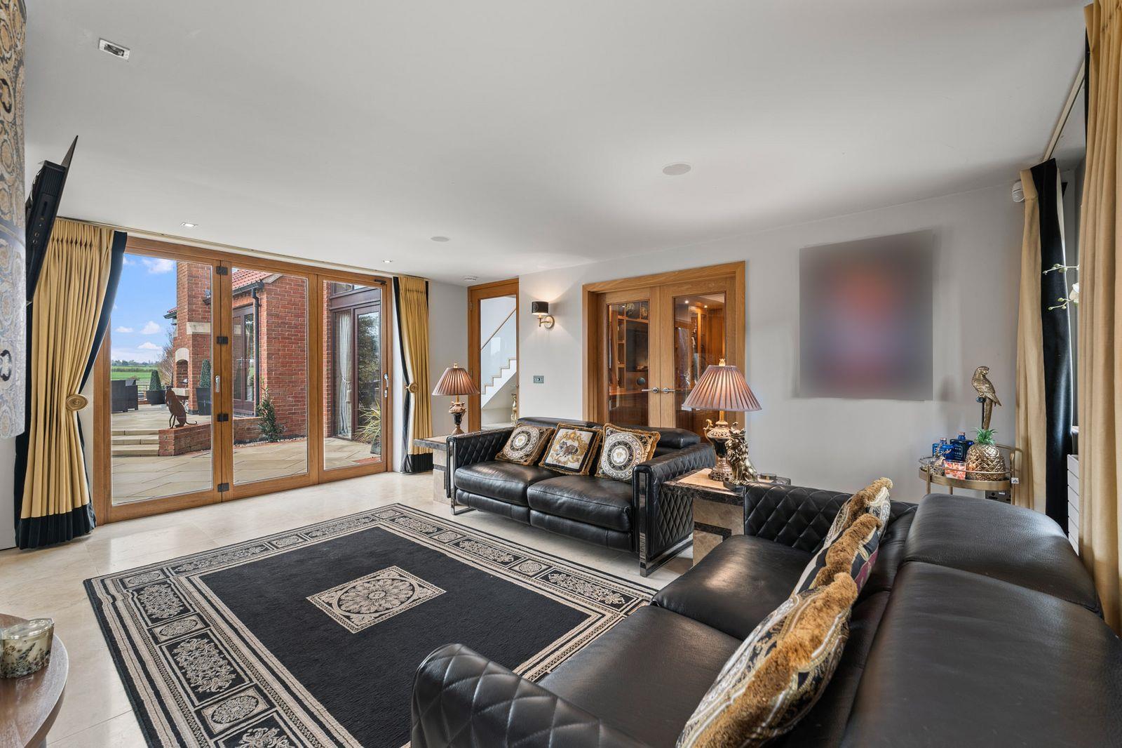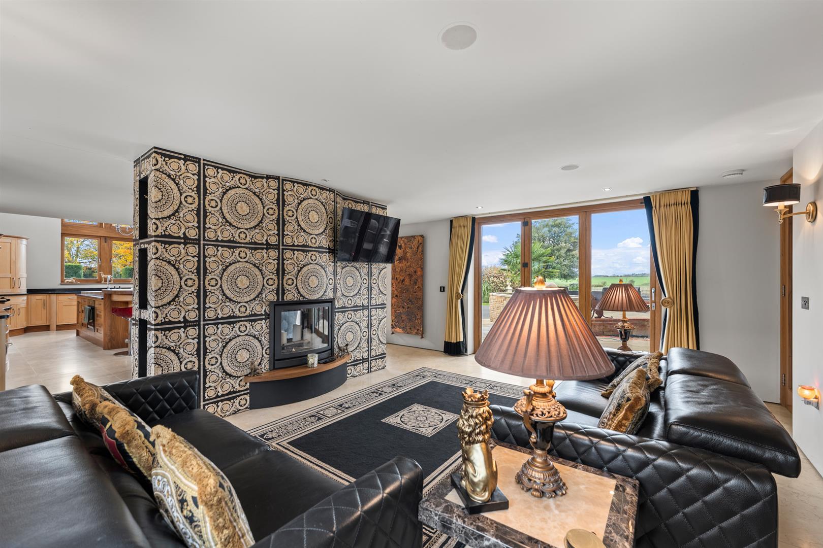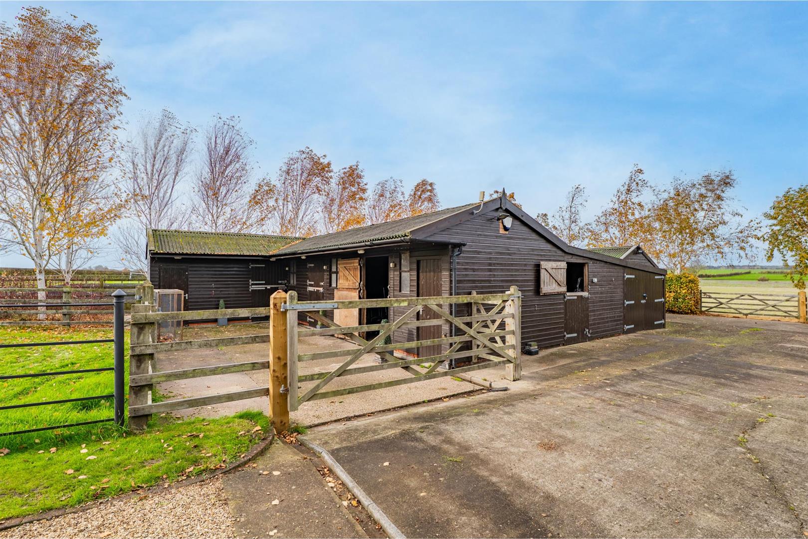 As well as the main accommodation the property occupies a wonderful, extensive plot, approached by electric gates onto a sweeping driveway bordered by well maintained lawns with established borders and a stunning timber arctic cabin with central fire providing a cosy space for relaxing particularly in the winter months, and specially adaptable benches that are great for sleepovers, creating a teenage den, a unique guest room or impressive adult cave. The driveway leads up to main house with an impressive south to westerly facing courtyard/terrace, and outdoor fireplace creating a wonderful entertaining space. This area looks across to a lawn enclosed by estate fencing with further electric gates leading into an additional gravelled courtyard area at the rear which would make an excellent stable yard and additional parking. This is also a gazebo with hot tub. The courtyard in turn leads down into a range of high quality Kingsland timber outbuildings providing stabling, feed store, tack room and additional timber garaging at the rear. and then into two level grass paddocks making this property perfect for the equestrian orientated client.