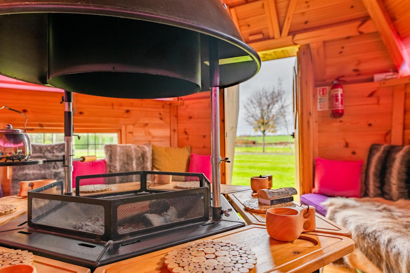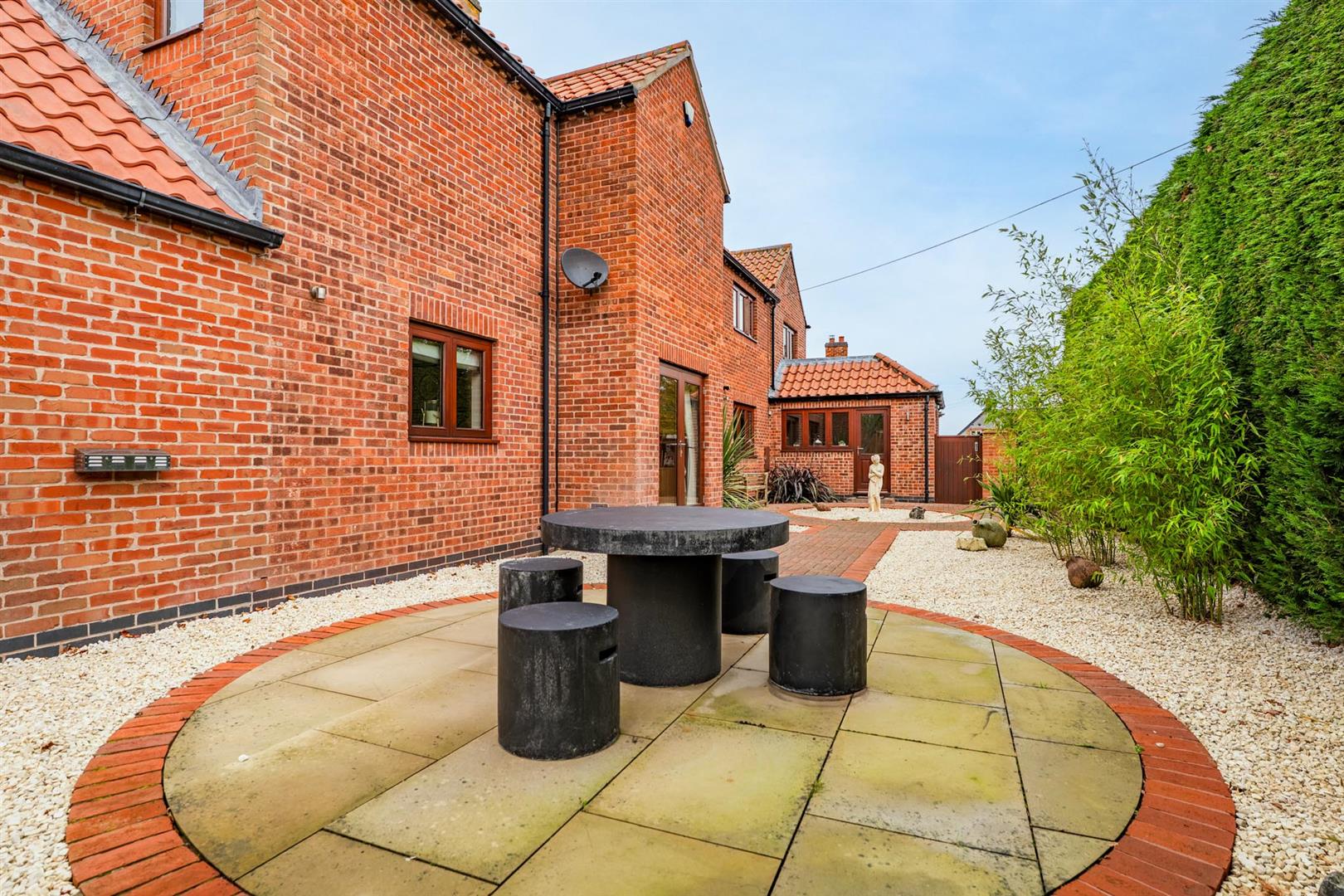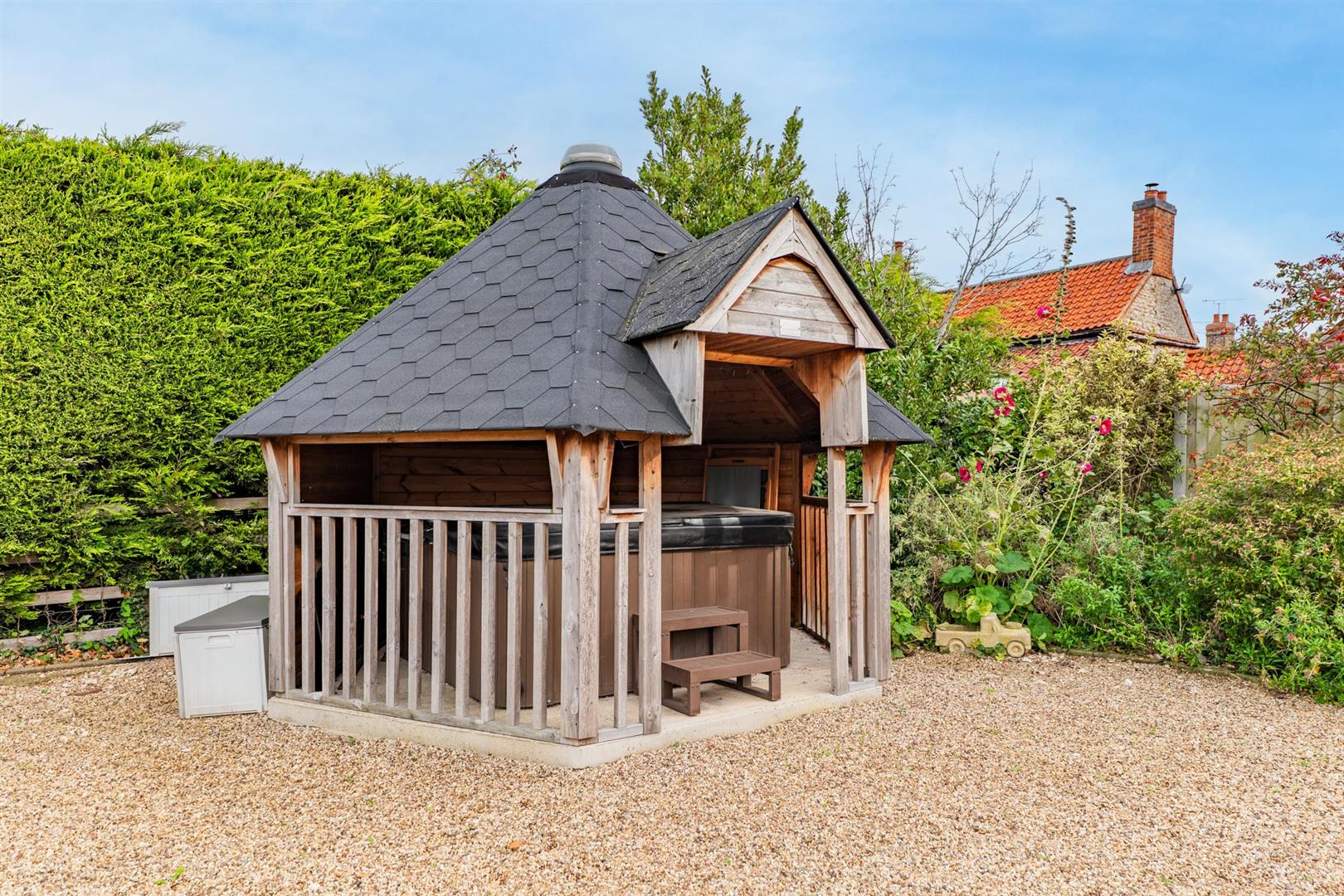 As well as the main accommodation the property occupies a wonderful, extensive plot, approached by electric gates onto a sweeping driveway bordered by well maintained lawns with established borders and a stunning timber arctic cabin with central fire providing a cosy space for relaxing particularly in the winter months, and specially adaptable benches that are great for sleepovers, creating a teenage den, a unique guest room or impressive adult cave. The driveway leads up to main house with an impressive south to westerly facing courtyard/terrace, and outdoor fireplace creating a wonderful entertaining space. This area looks across to a lawn enclosed by estate fencing with further electric gates leading into an additional gravelled courtyard area at the rear which would make an excellent stable yard and additional parking. This is also a gazebo with hot tub. The courtyard in turn leads down into a range of high quality Kingsland timber outbuildings providing stabling, feed store, tack room and additional timber garaging at the rear. and then into two level grass paddocks making this property perfect for the equestrian orientated client.