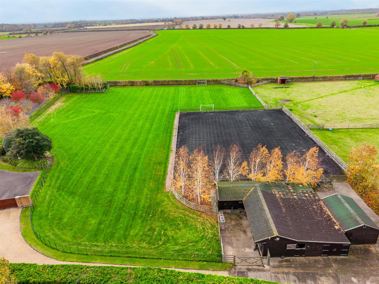 Exterior - The property occupies an impressive plot of generous proportions comprising formal gardens, menage and paddock which in total extends to approximately 5.15 acres. The property has a great deal of privacy, overlooking open fields to the south and west and is approached by electric gates onto a sweeping tarmacadam driveway which provides a considerable level of off road parking. The driveway is bordered by established lawns and is well stocked with trees and shrubs and leads up to a formal approach with a raised terrace to either side of the entrance which benefits from a south to westerly aspect and links back into the main receptions and kitchen. This provides a wonderful outdoor entertaining space which catches the majority of the days sun but, for the cooler evenings, has an outdoor raised fire and chimney providing heating to the terrace. The driveway continues to the side and rear of the property providing a substantial level of off road parking and runs down to the Kingsland Stable Block providing stabling, workshop space and potential garaging. The more formal gardens are separated by estate fencing which leads onto a further lawned area and, in turn, to post and rail paddocks at the rear and a central top grade menage surfaced with high grade 'Redhill Equestrian Sand' and fine rubber top dressing, measuring 40m x 30m ideal for those with an equestrian bias. From the main driveway a further pair of timber electric gates leads through into an enclosed gravelled parking area which provides additional secure parking with a car charging point and a timber pod which houses a hot tub. There is the option for a second entrance to the property if the equestrian facility was to be used as a business or by third parties. This would prevent the main house being disturbed, and offer easy access for horse boxes, (dependent on relevant permissions being granted).