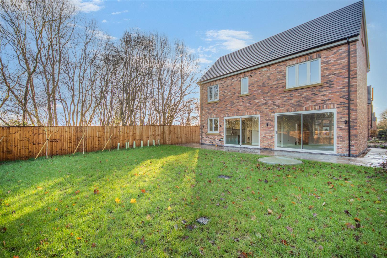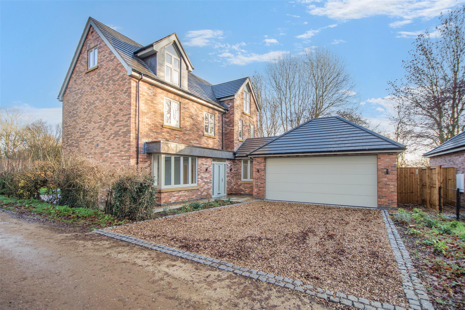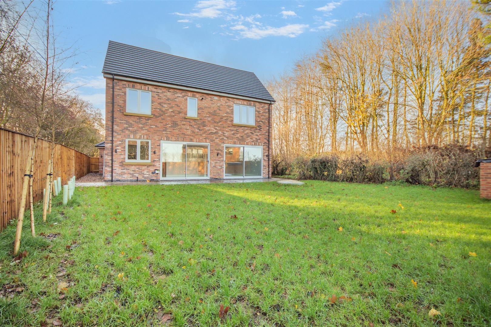 Outside - Pear Tree Lane is a countryside lane accessed from the centre of Teversal Village off Pleasley Road. The approach alongside adjacent countryside with wonderful views continue when you get to the property, which really do emphasise the quiet, rural village setting. Externally, plot 1 has a double width pebble driveway frontage which leads to a large attached double garage with a remote controlled electric up and over door. There are borders to each side of the driveway with an attractive sandstone pathway across the front and down the side of the property leading to the rear garden. There is also gated access to the right hand side of the garage giving access behind the garage and to the other side of the property which leads round to the rear. To the rear of the property, there is an extensive sandstone patio which extends across the full width of the property. Beyond here, there is a lawn, Kingspan Klargester BioDisc, fenced boundaries on two sides with planted trees in front and a hedgerow boundary to the other side.