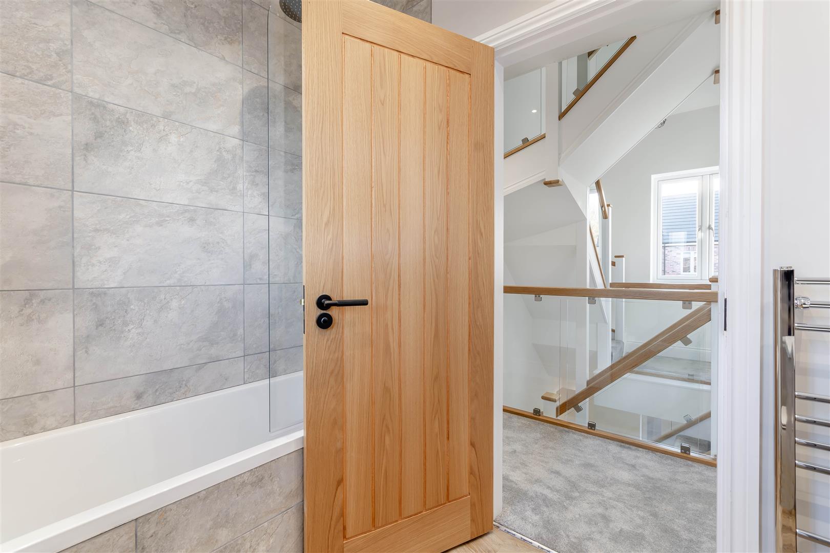 Entrance Hall - 4.22m max x 2.62m (13'10" max x 8'7") - With herringbone LVT floor, underfloor heating, six ceiling spotlights, three double power points and an oak and glass staircase provides access to the first floor galleried landing.
