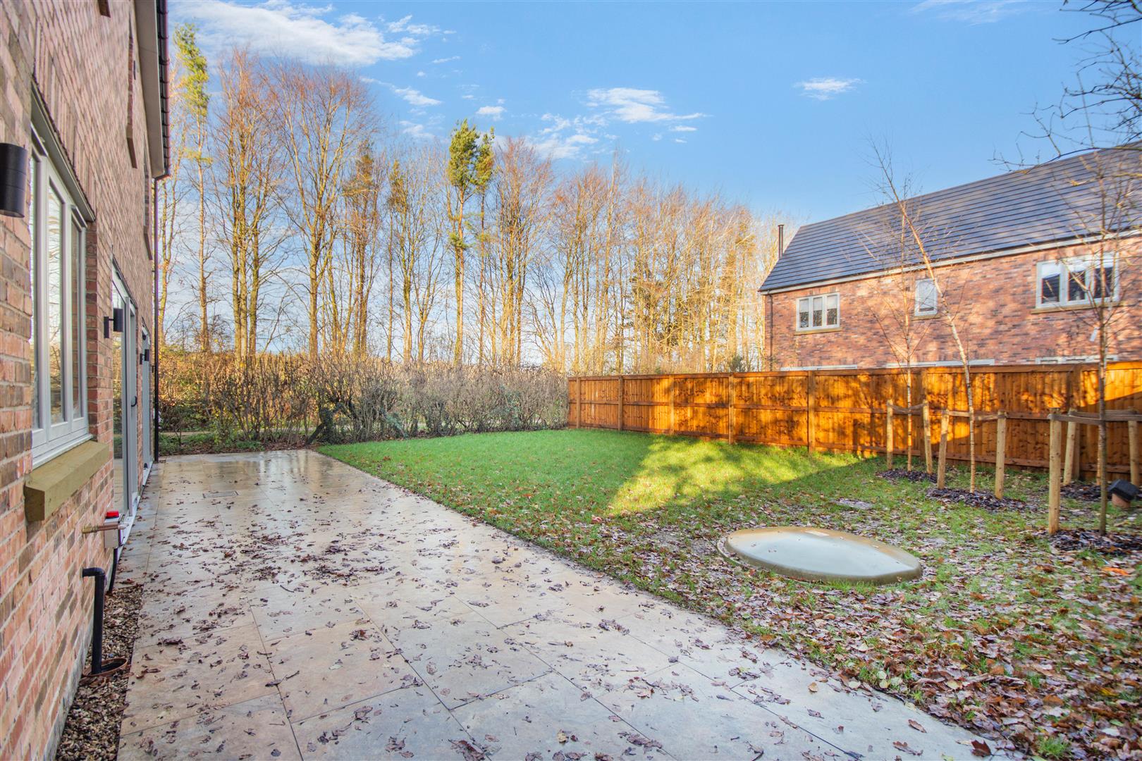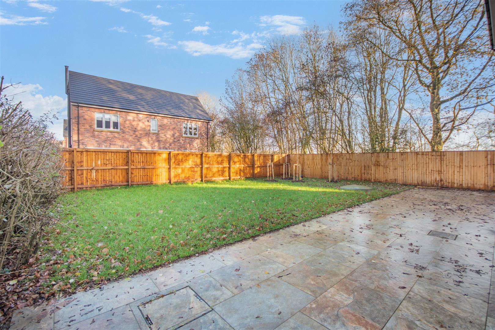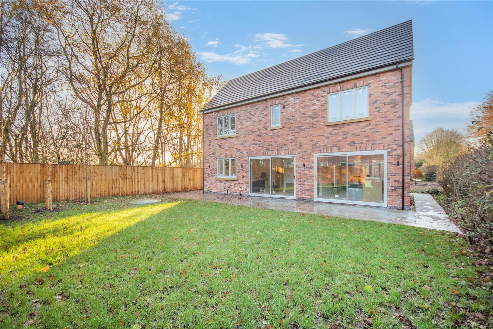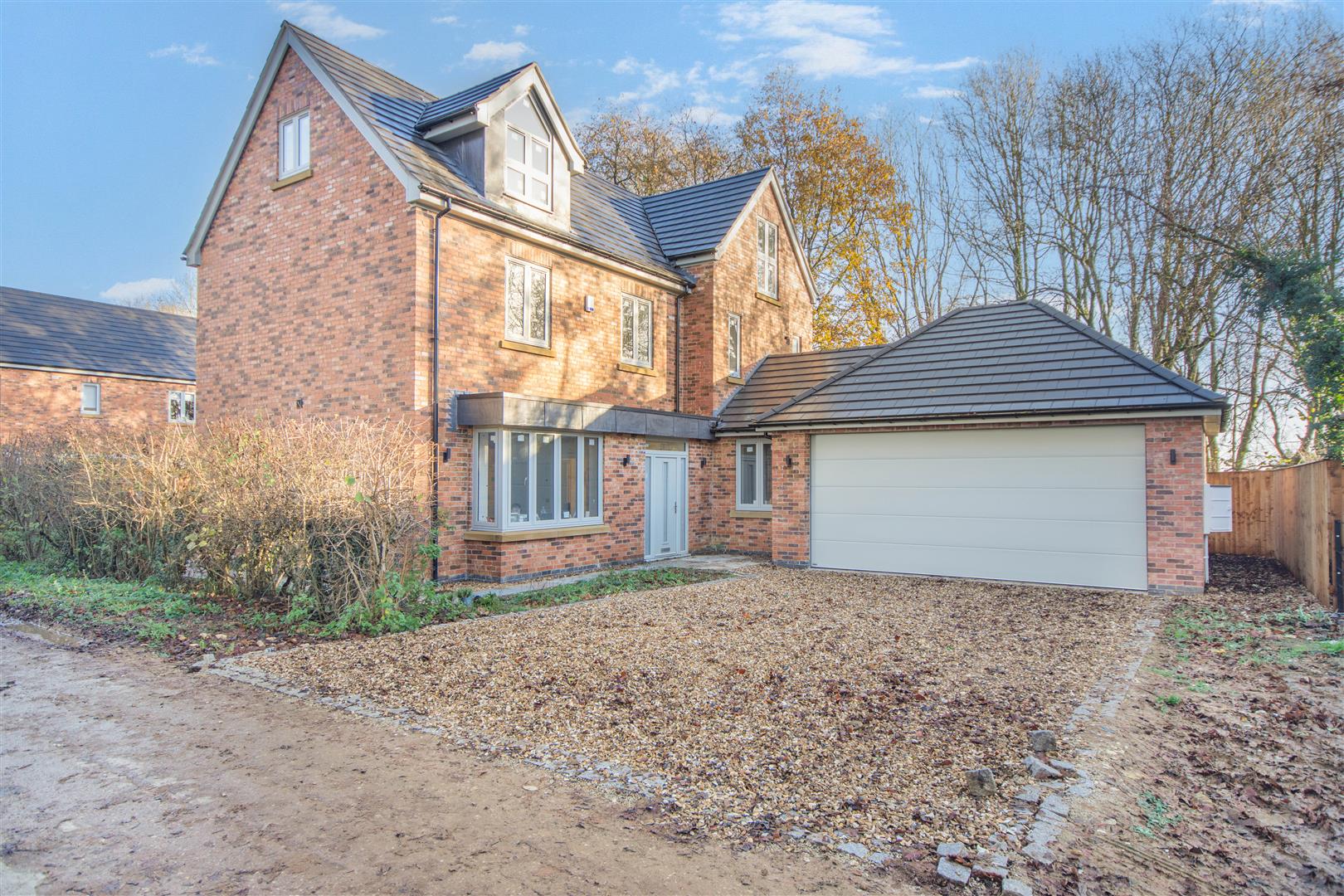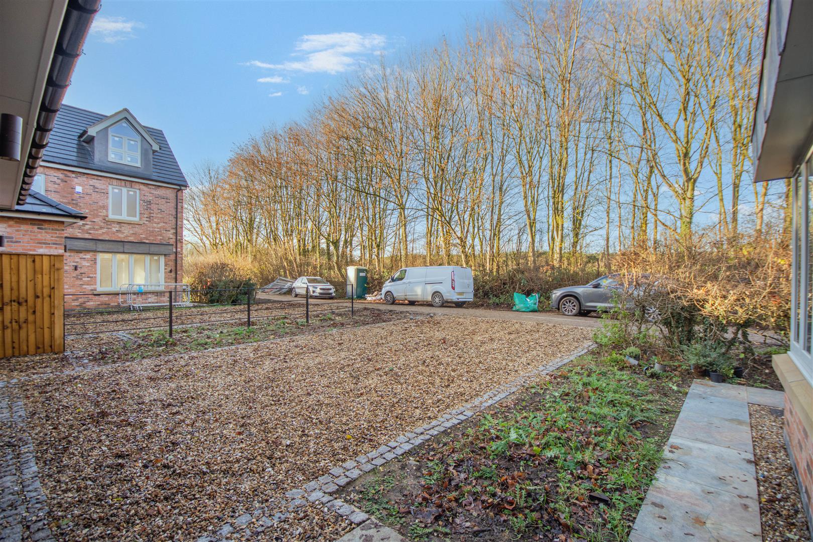 Outside - Pear Tree Lane is a countryside lane accessed from the centre of Teversal Village off Pleasley Road. The approach alongside adjacent countryside with wonderful views continue when you get to the property, which really do emphasise the quiet, rural village setting. Externally, plot 3 has a double width pebble driveway frontage which leads to a large integral double garage with a remote controlled electric up and over door. There are borders to each side of the driveway with an attractive sandstone pathway across the front and down the side of the property leading to the rear garden. To the rear of the property, there is an extensive sandstone patio which extends across the full width of the property. Beyond here, there is a lawn, Kingspan Klargester BioDisc, fenced boundaries on two sides with planted trees in front and a hedgerow boundary to the other side.
