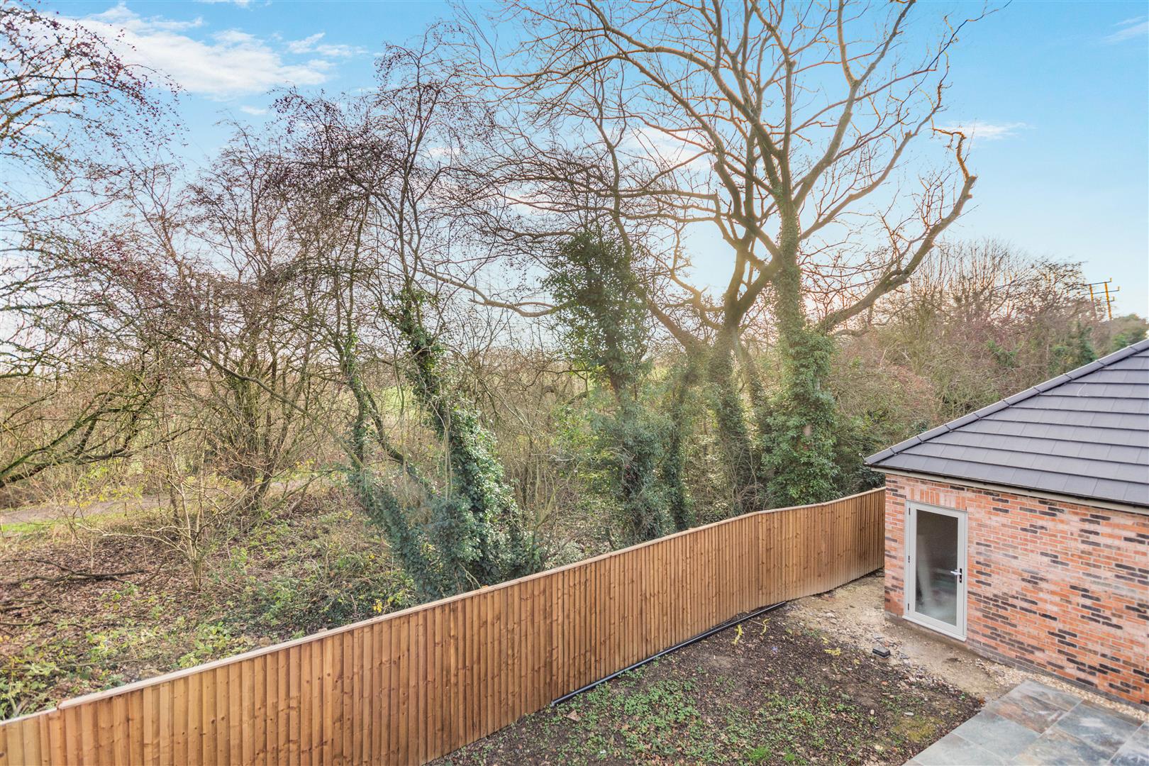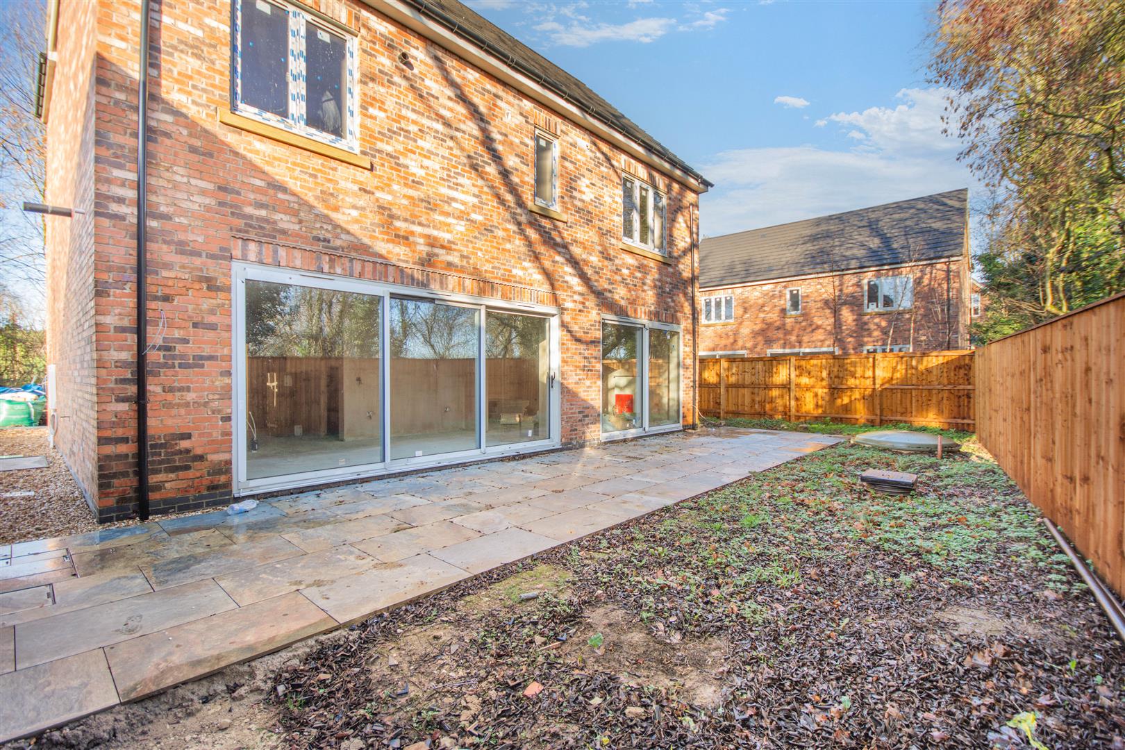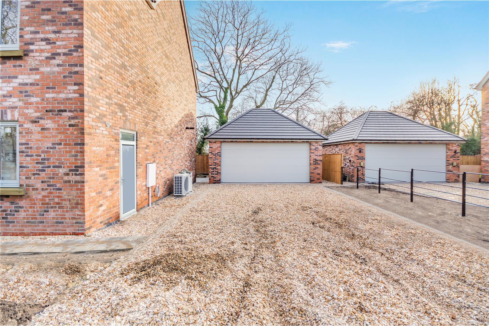 Outside - Pear Tree Lane is a countryside lane accessed from the centre of Teversal Village off Pleasley Road. The approach alongside adjacent countryside with wonderful views continue when you get to the property, which really do emphasise the quiet, rural village setting. Externally, plot 5 has a double width pebble driveway to the side of the house providing off road parking for numerous vehicles which leads to the large detached double garage with a remote controlled electric up and over door. There are gravel and planting borders to each side of the driveway with access to the side and rear of the garage leading round to the rear garden. A sandstone pathway from the driveway extends across the front of the property leading to the other side of the house where there is a 9ft wide garden area and path leading to the rear garden. To the rear of the property, there is an extensive sandstone patio which extends the full width of the property, a lawn, Kingspan Klargester BioDisc and fenced boundaries on two sides.