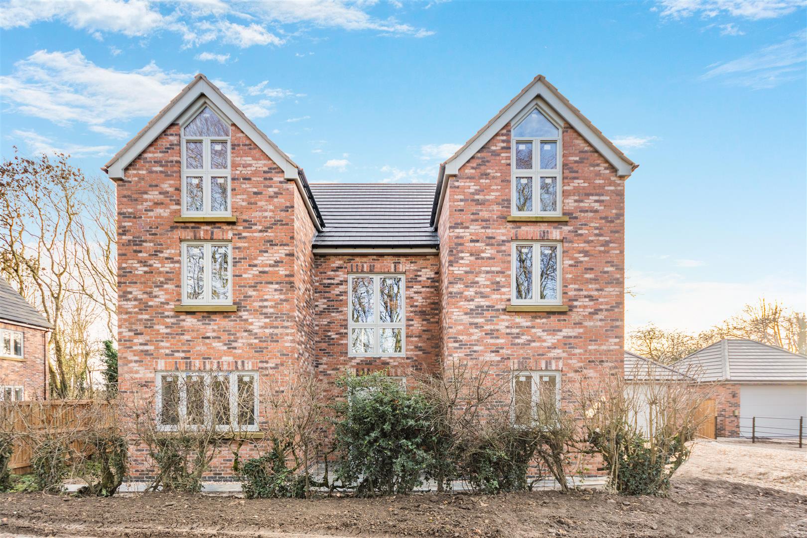 Plot 5 Hawthorne House provides a spacious family home arranged over three floors (2,432 sq ft) with high ceilings to all floors, five double bedrooms, four bath/shower rooms and a large detached double garage (413 sq ft). The property comes with a 10 year new build warranty and high specification fixtures and fittings to include; high quality contemporary fitted kitchen with integrated appliances and quartz work surfaces, Porcelanosa bathrooms, carpets and LVT flooring throughout, chrome switches, sockets and spotlights, underfloor heating with individual room thermostats to all floors via a Bosch air source heat pump, high quality flush casement double glazed windows and large contemporary aluminium sliding patio doors to the lounge and kitchen.
