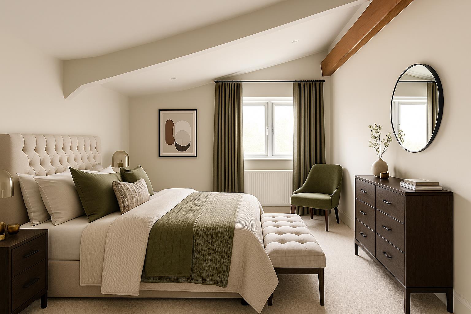 Bedroom 1 - 5.00m x 3.78m (16'5" x 12'5") - A well proportioned master suite which benefits from a large double bedroom linking through into a walk through dressing room and, in turn, ensuite facilities. The main bedroom in total offers around 340 sq.ft. of floor area, having attractive pitched ceiling and benefitting from a dual aspect having double glazed window to both the rear and side elevations with wonderful views across adjacent fields.