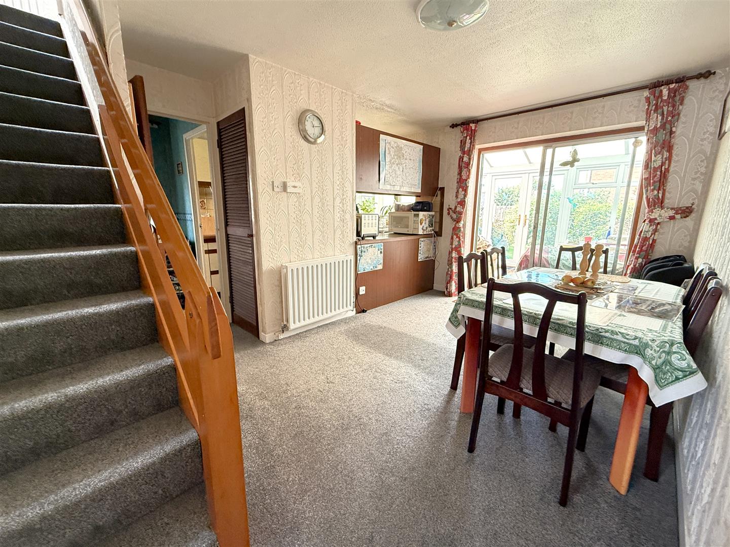Dining Room - 4.57m x 2.64m (15' x 8'8") - A further versatile reception space ideal as formal dining lying adjacent to the kitchen and having a further door returning to the initial entrance hall. The room having a useful built in cupboard, central heating radiator, balustrade staircase rising to the first floor and double glazed patio door into: