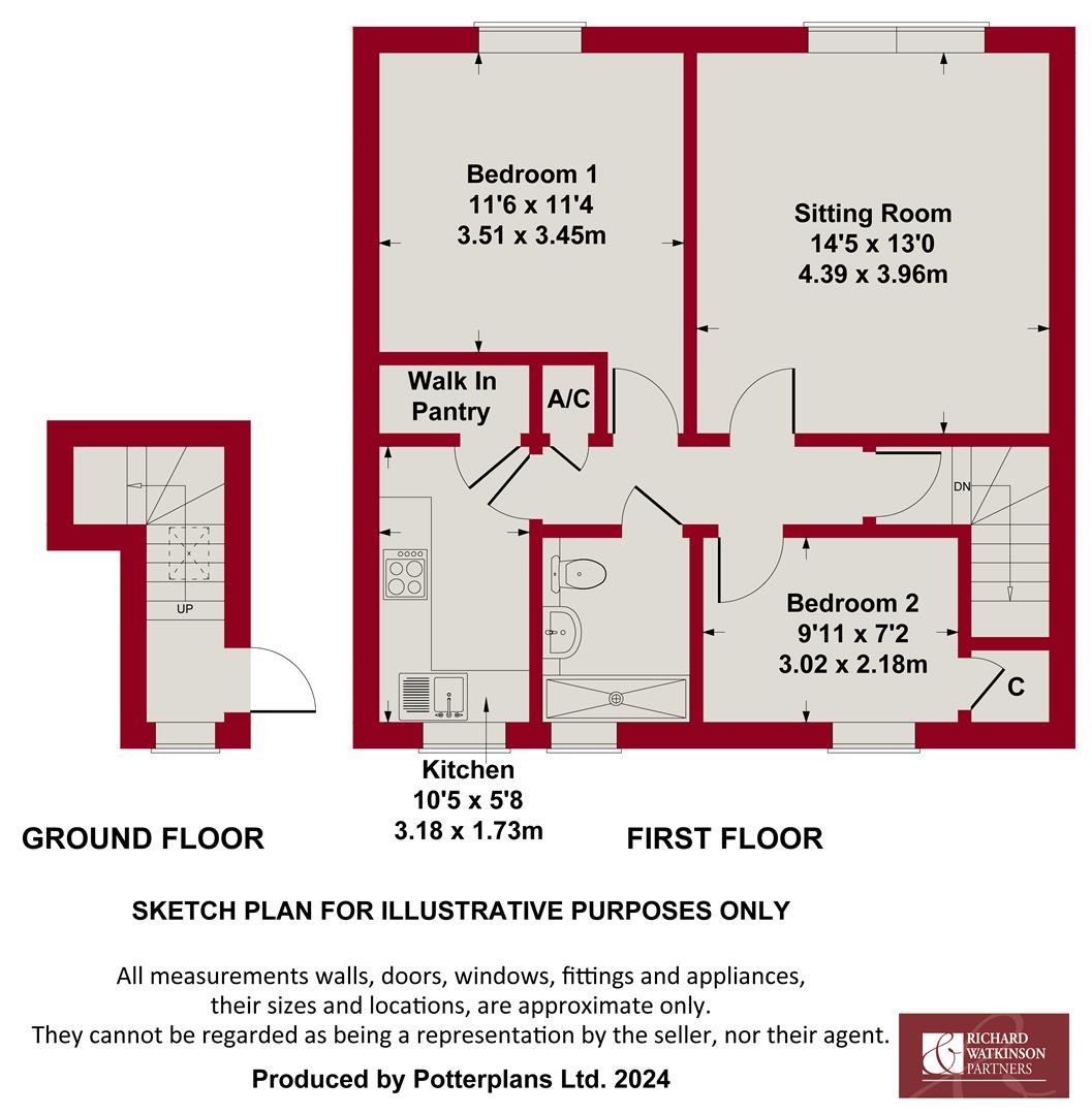 The accommodation comprises an initial ground floor entrance hall with a staircase rising to a first floor landing and, in turn, a spacious westerly facing sitting/dining room, a galley style kitchen with walk in pantry off, two bedrooms and a shower room.