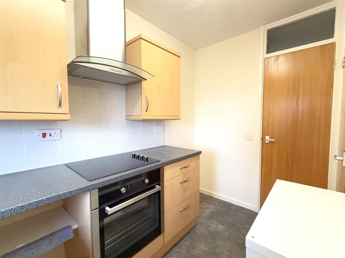Kitchen - 3.18m x 1.73m (10'5" x 5'8") - Having aspect to the front and fitted with a range of relatively modern wall, base and drawer units with laminate preparation surfaces, inset stainless steel sink and drain unit with chrome taps and tiled splash backs, integrated appliances including electric hob with chimney hood over and single oven beneath, plumbing for washing machine, space for free standing fridge freezer, wall mounted electric heater and sealed unit double glazed window.