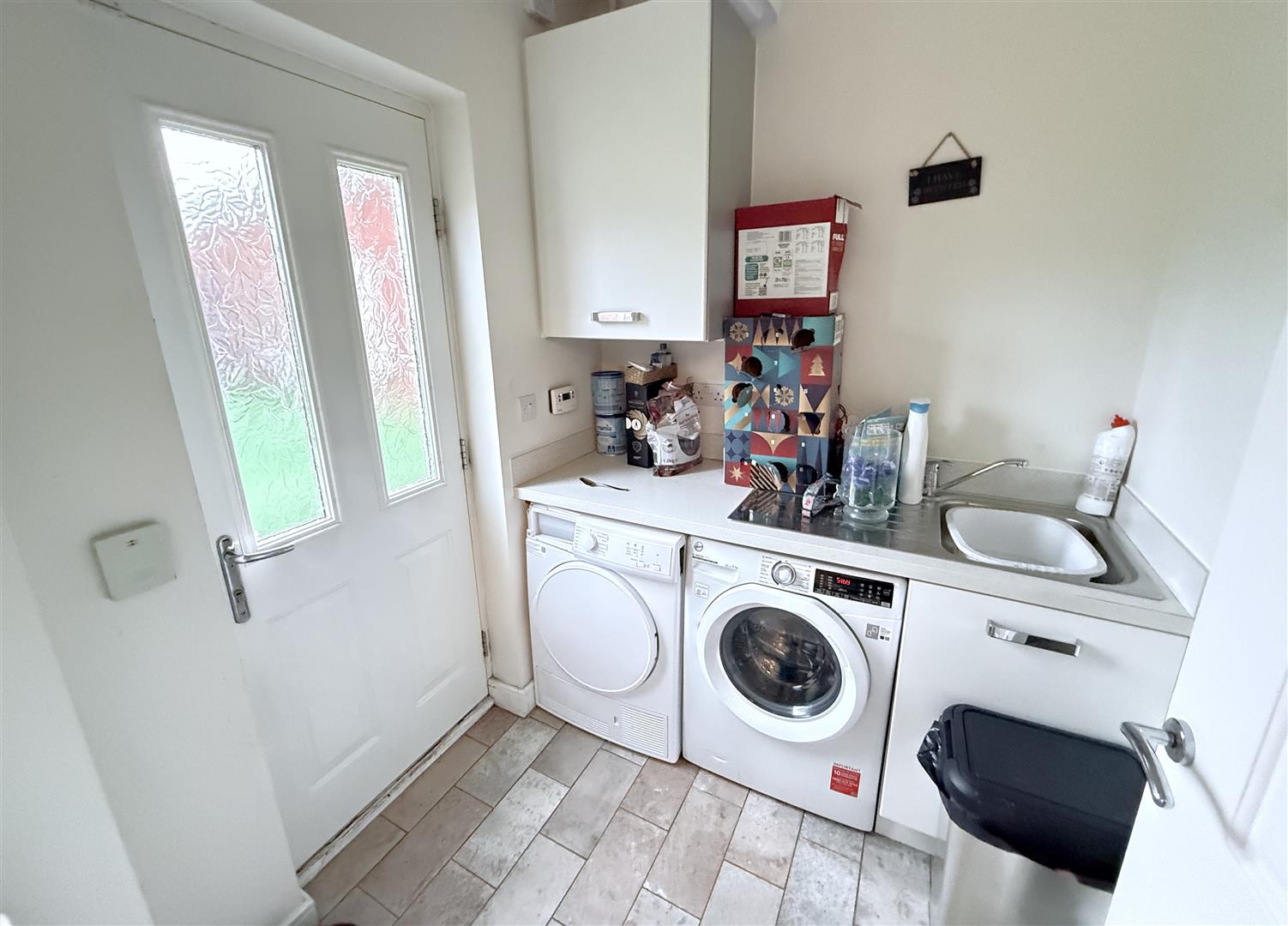 Utility Room - 1.91m x 1.73m (6'3" x 5'8") - Having wall and base units, laminate work surface with inset sink and drain unit, plumbing for washing machine, space for tumble dryer, continuation of the tiled floor, wall mounted gas central heating boiler concealed behind kitchen cupboard and exterior door into the garden.