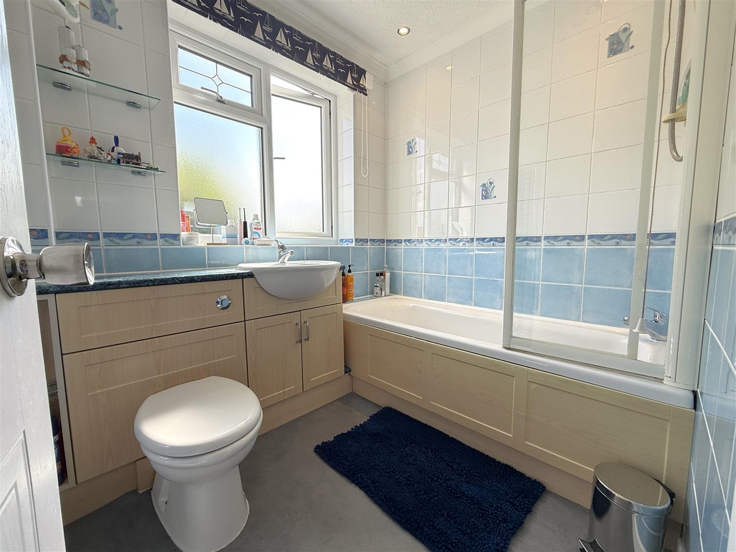 Bathroom - 2.13m x 1.80m (7' x 5'11") - Having a three piece suite comprising panelled bath with chrome mixer tap and further wall mounted electric Mira shower over and bifold screen, vanity unit with WC with concealed cistern and vanity surface over with inset washbasin with chrome mixer tap and tiled splash backs, contemporary towel radiator and double glazed window overlooking the rear garden.