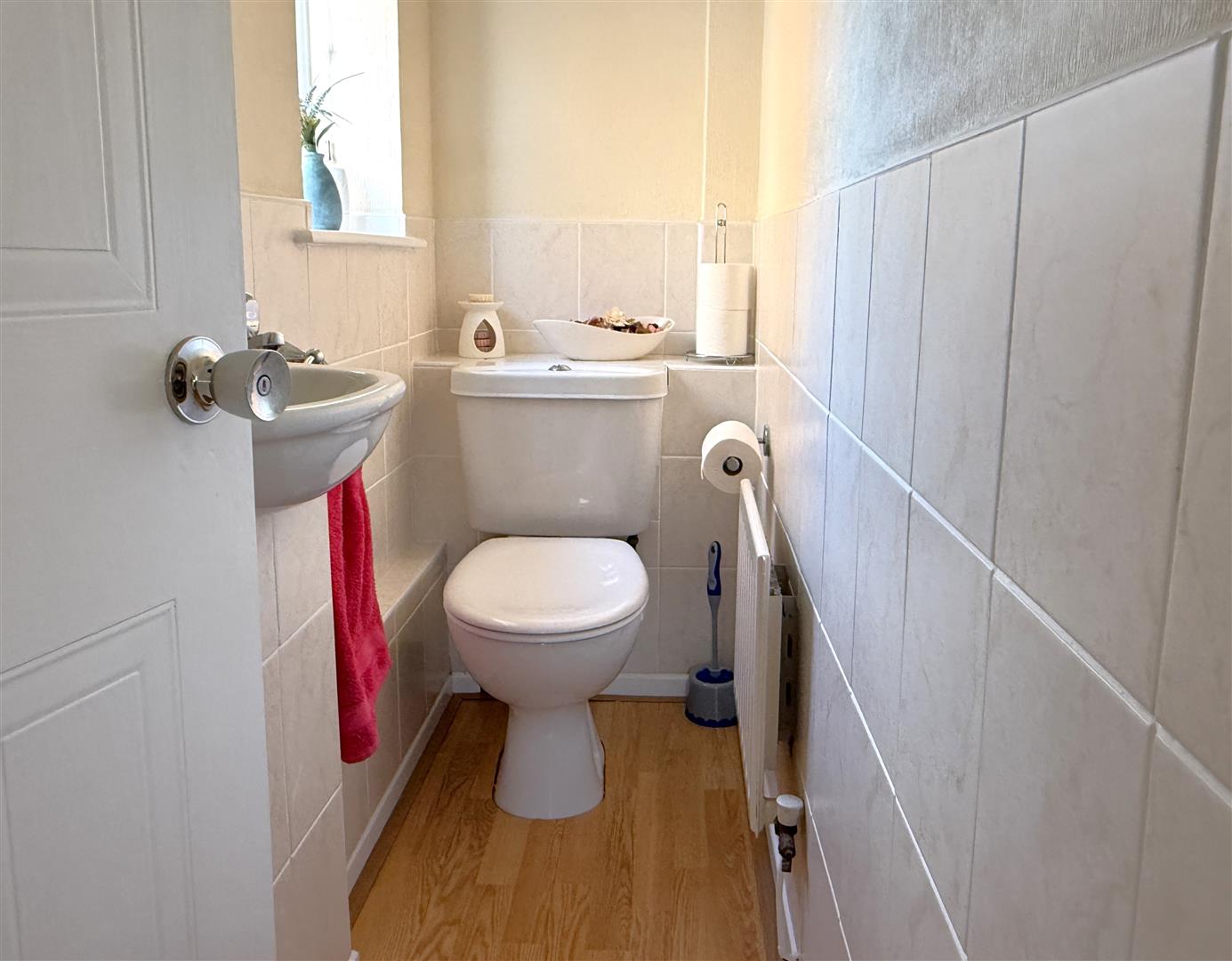 Ground Floor Cloak Room - 2.31m x 0.79m (7'7" x 2'7") - Having a two piece white suite comprising close coupled WC and washbasin with tiled splash backs, central heating radiator and double glazed window to the side.