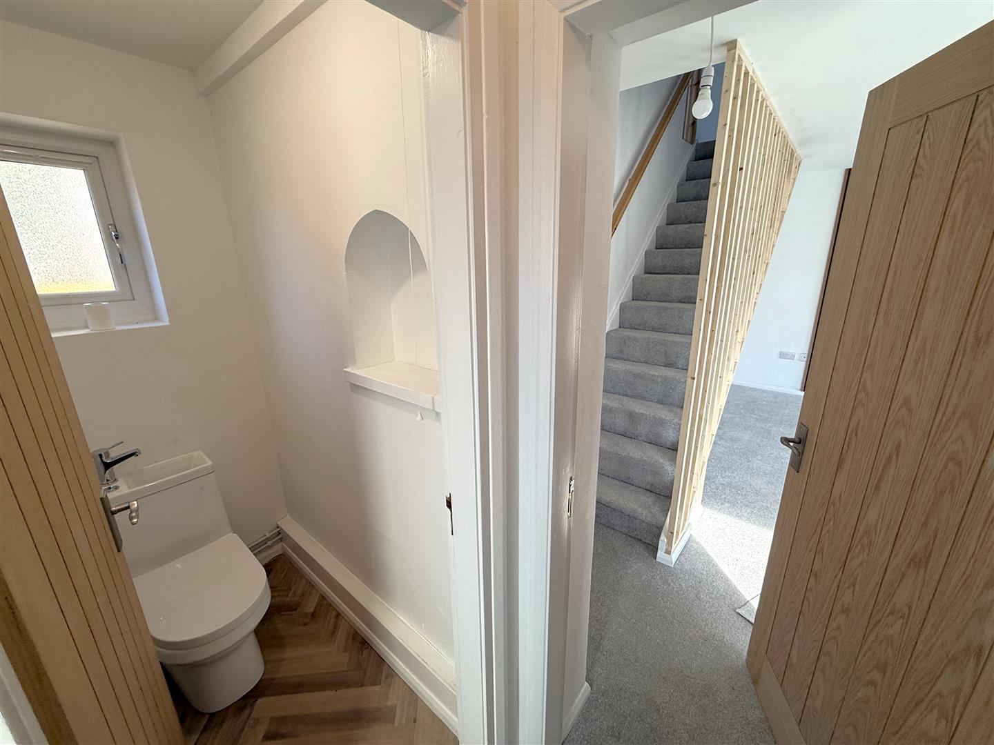 Ground Floor Cloakroom - 1.52m x 0.99m (5'0 x 3'3) - Having contemporary WC with integrated wash basin, contemporary towel radiator, double glazed window to the side.