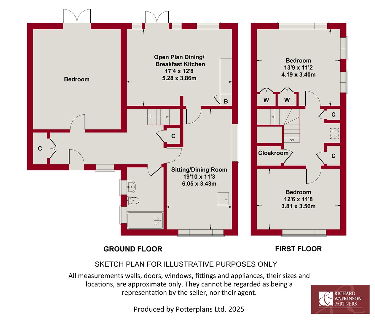 First Floor Cloak Room - 1.22m x 0.61m (4' x 2') - Having a two piece suite comprising close coupled WC and wall mounted washbasin.