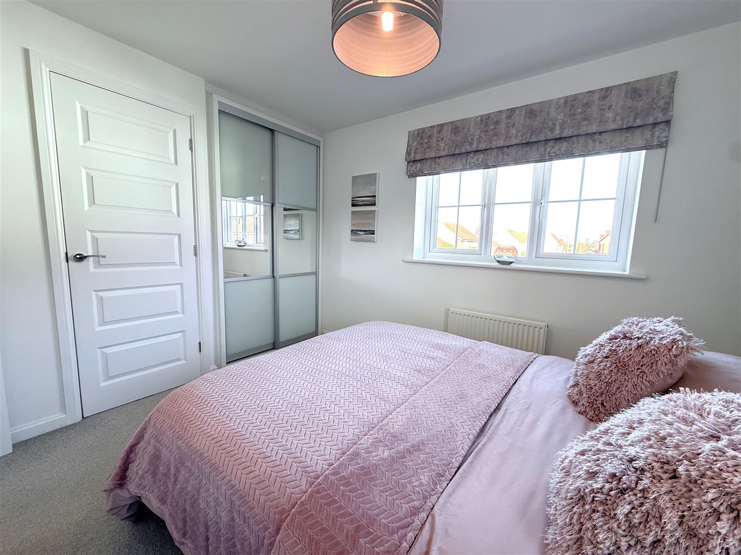 Bedroom 2 - 2.67m x 3.20m (excluding wardrobes) (8'9" x 10'6" - A further double bedroom having a dual aspect with double glazed windows to the side and front. The room benefitting from built in wardrobes with sliding door fronts and an additional over stairs storage cupboard.
