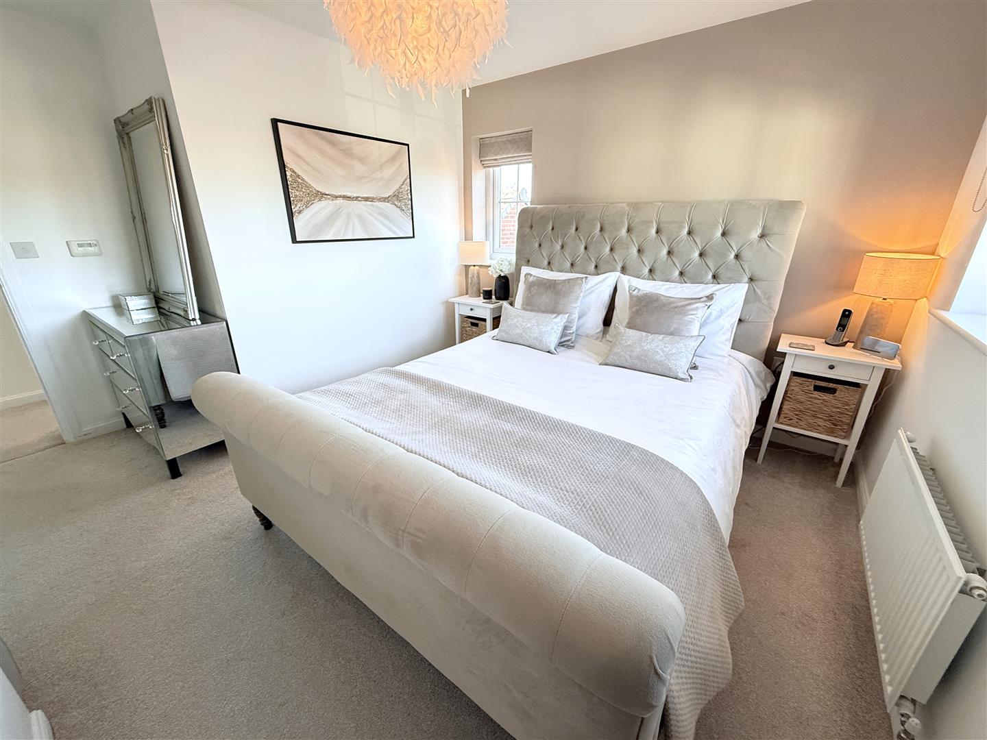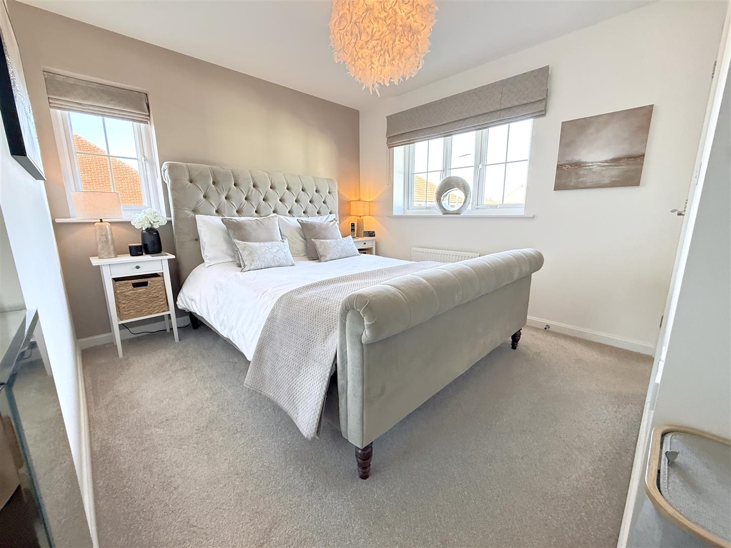 Bedroom 1 - 3.91m max x 3.71m (excluding wardrobes) (12'10" ma - A well proportioned double bedroom benefitting from ensuite facilities as well as a run of fitted wardrobes with sliding door fronts and a double glazed window to both the side and front with an aspect down the close.
