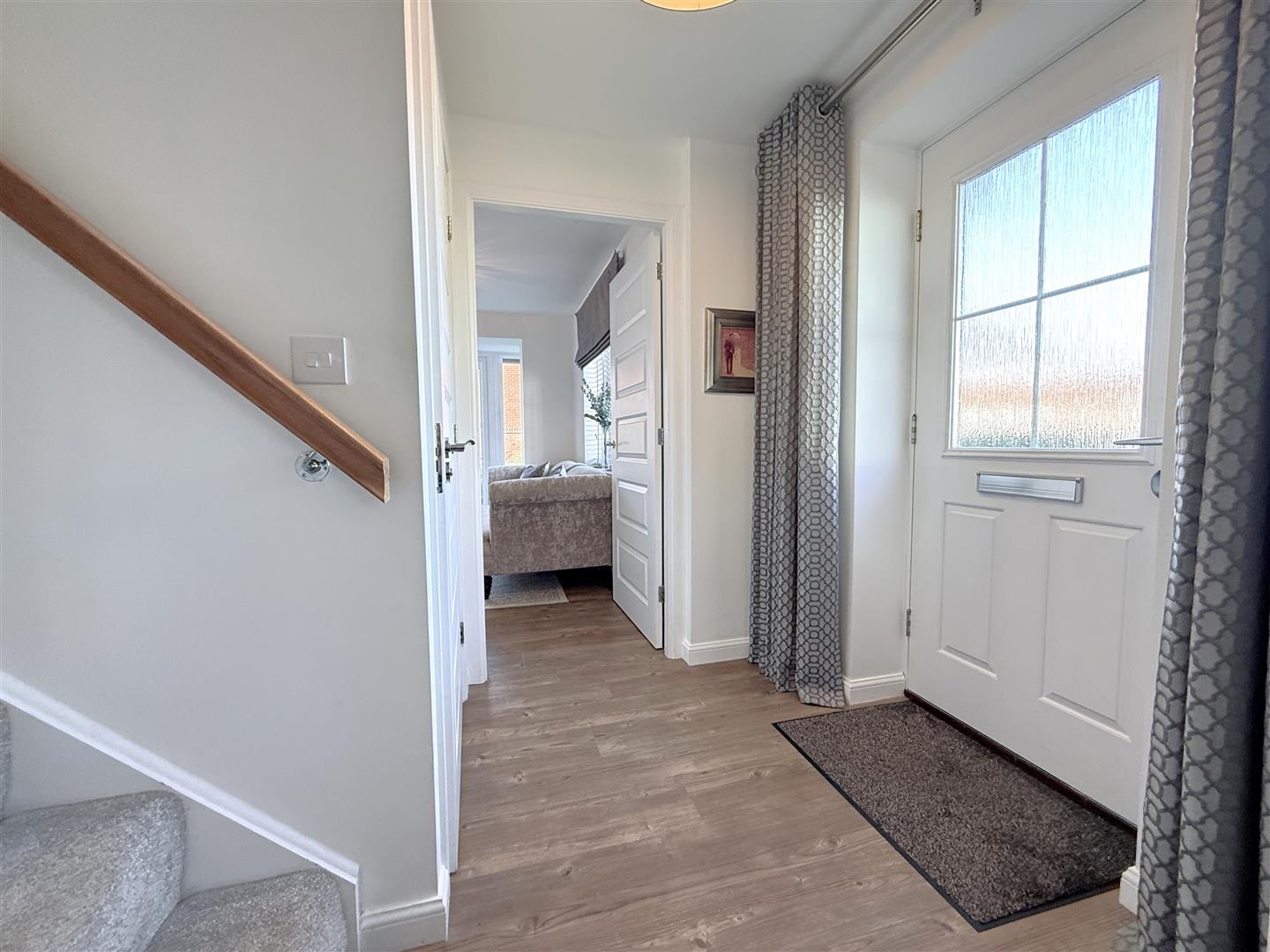 Initial Entrance Hall - 1.65m x 1.98m (5'5" x 6'6") - A pleasant initial entrance vestibule having Amtico wood grain effect flooring, staircase rising to the first floor landing and further doors, in turn, leading to: