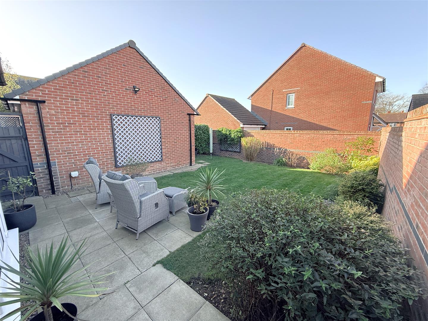 Exterior - The property occupies a pleasant landscaped corner plot which benefits from a south to westerly facing main garden and a tandem length driveway at the rear with a detached brick built garage. The property is set back behind an established hedged frontage with a central pathway leading to the main entrance and a timber courtesy gate leading into an enclosed, mainly walled, rear garden which is beautifully kept with an initial paved terrace, central lawn and well maintained perimeter borders with a range of established shrubs. A further gate gives access onto the driveway at the rear which provides off road car standing for several vehicles and, in turn, leads to a brick built garage with up an over door, power and light.