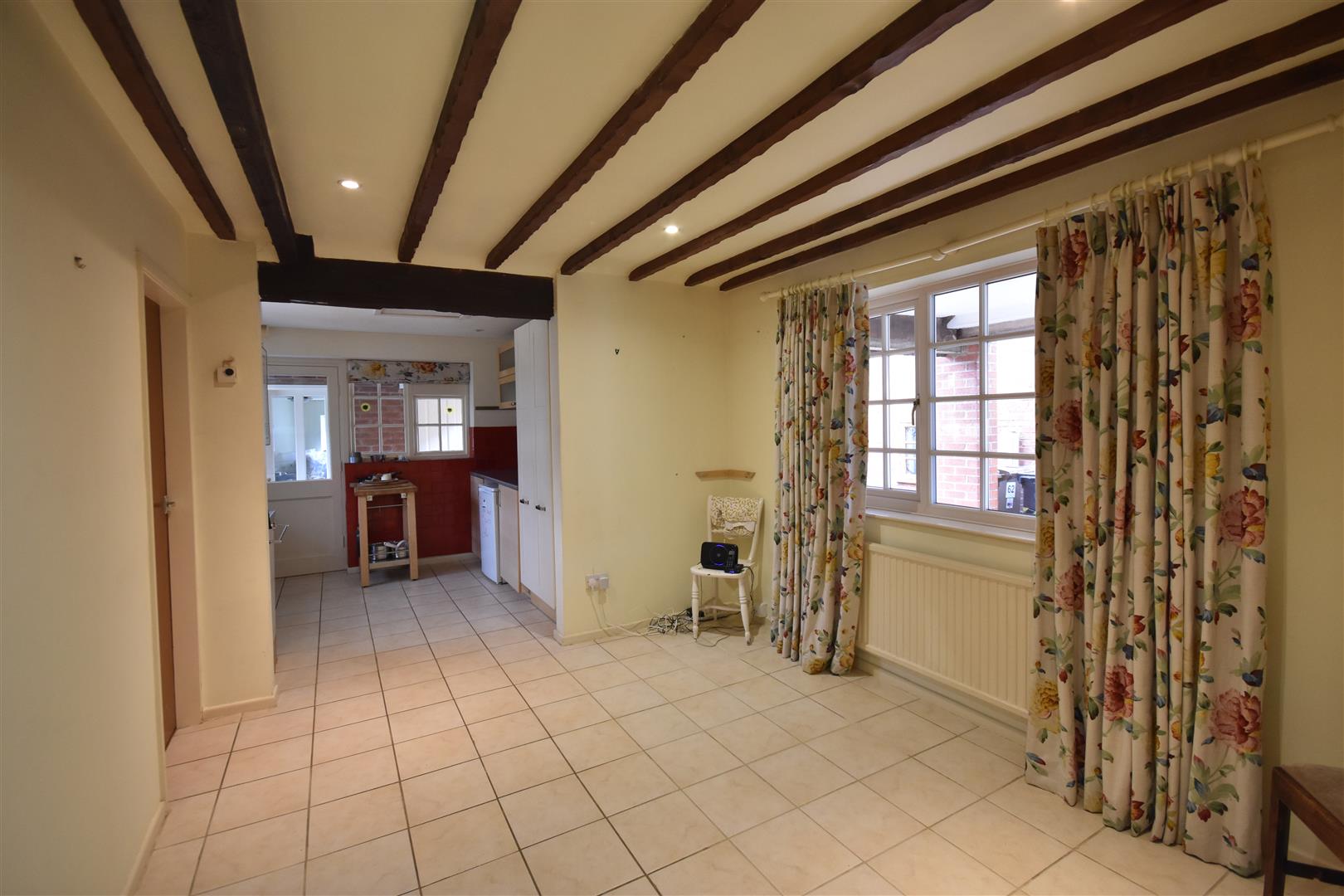 Dining Area - 3.63m x 3.05m (11'11 x 10') - Beamed ceiling, ceramic tiled floor, radiator, LED lighting and the dining room is open plan with the kitchen area.