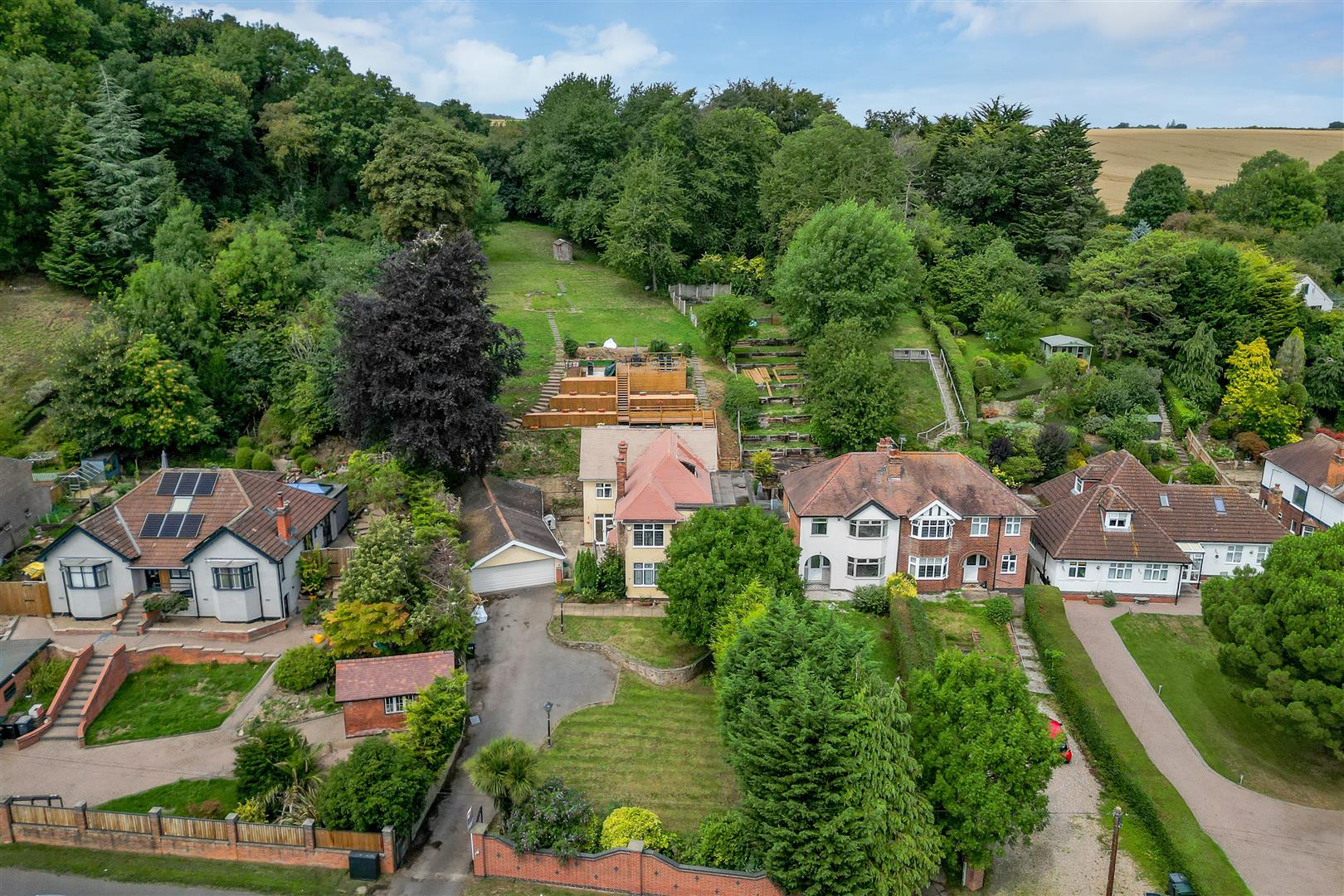 The property occupies an extensive elevated plot which exceeds half an acre, having initial lawned frontage, paved terrace to the side and timber steps and split level terraces, lead up on to an elevated lawned rear garden with trees to the foot and affording fantastic panoramic views to the front across the Trent Valley countryside.