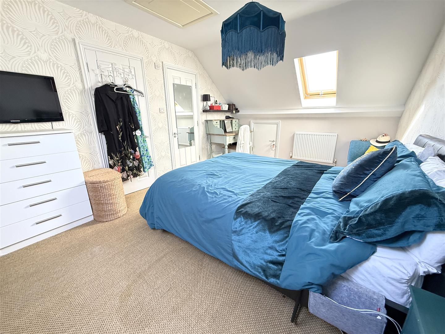 Dressing Area - 2.16m x 1.17m (7'1 x 3'10) - Having hanging rail, ceiling light point, UPVC double glazed window to the side with bespoke blinds.