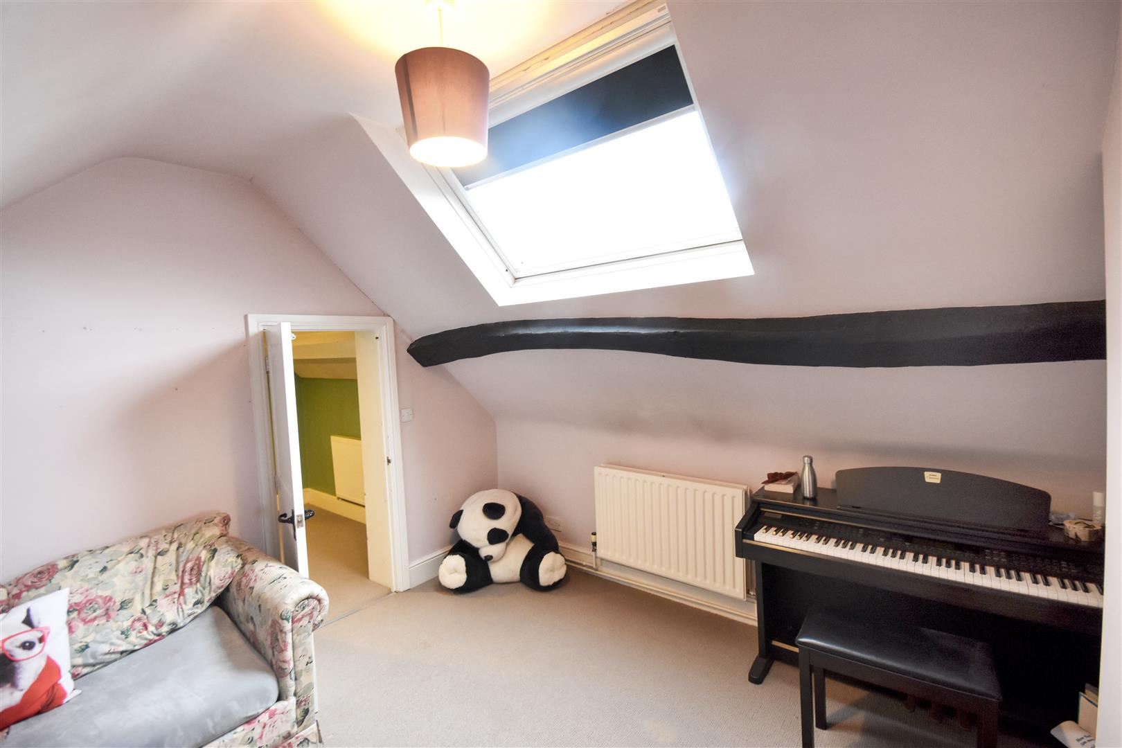 Bedroom Five - 3.89m x 3.53m (12'9 x 11'7) - Gable window with Velux roof light, double panelled radiator, exposed perlins and vaulted ceiling.
