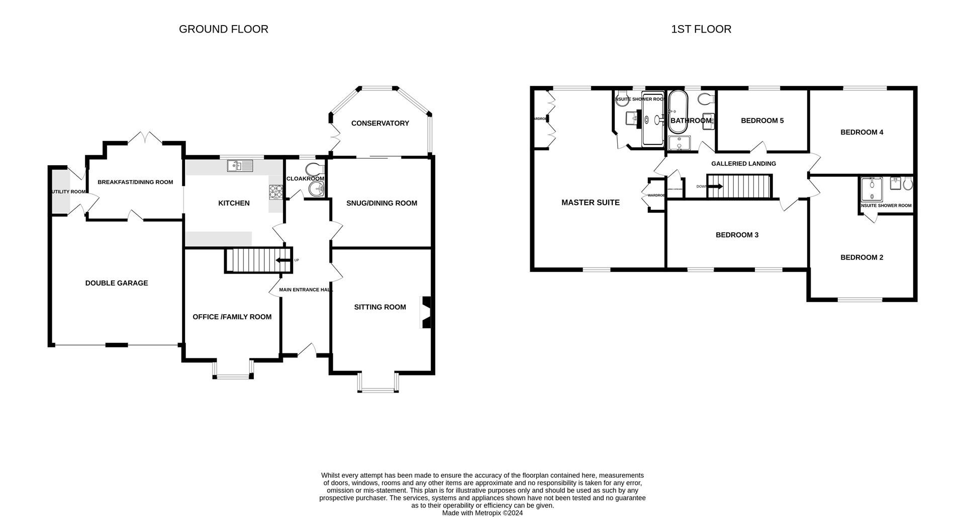 Internally the property offers a versatile level of accommodation boasting five double bedrooms, two ensuite and main bathroom all of which have been tastefully upgraded with contemporary suites, the master bedroom being a particularly impressive room with excellent floor area.