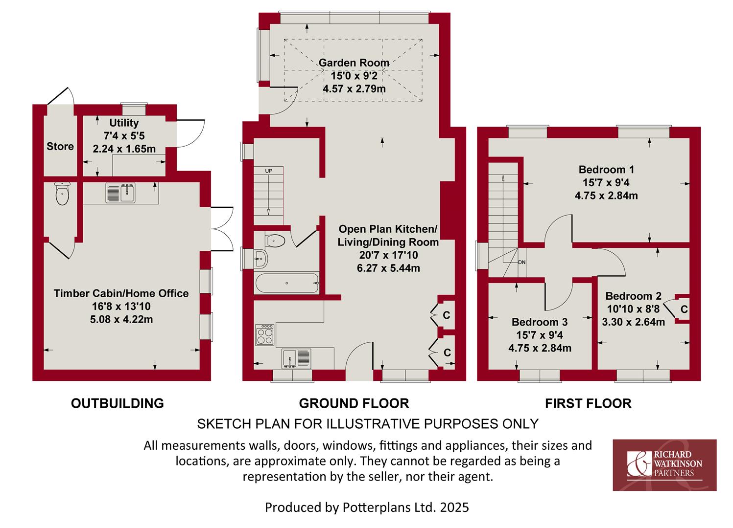 Timber Cabin/Home Office - 5.08m x 4.22m (16'8" x 13'10") - A useful addition to the property providing an outdoor reception space ideal as a home office, gym or study perfect for today's way of working, having power and light and also encompassing a useful WC as well as built in cupboard with work surface over with inset sink unit.