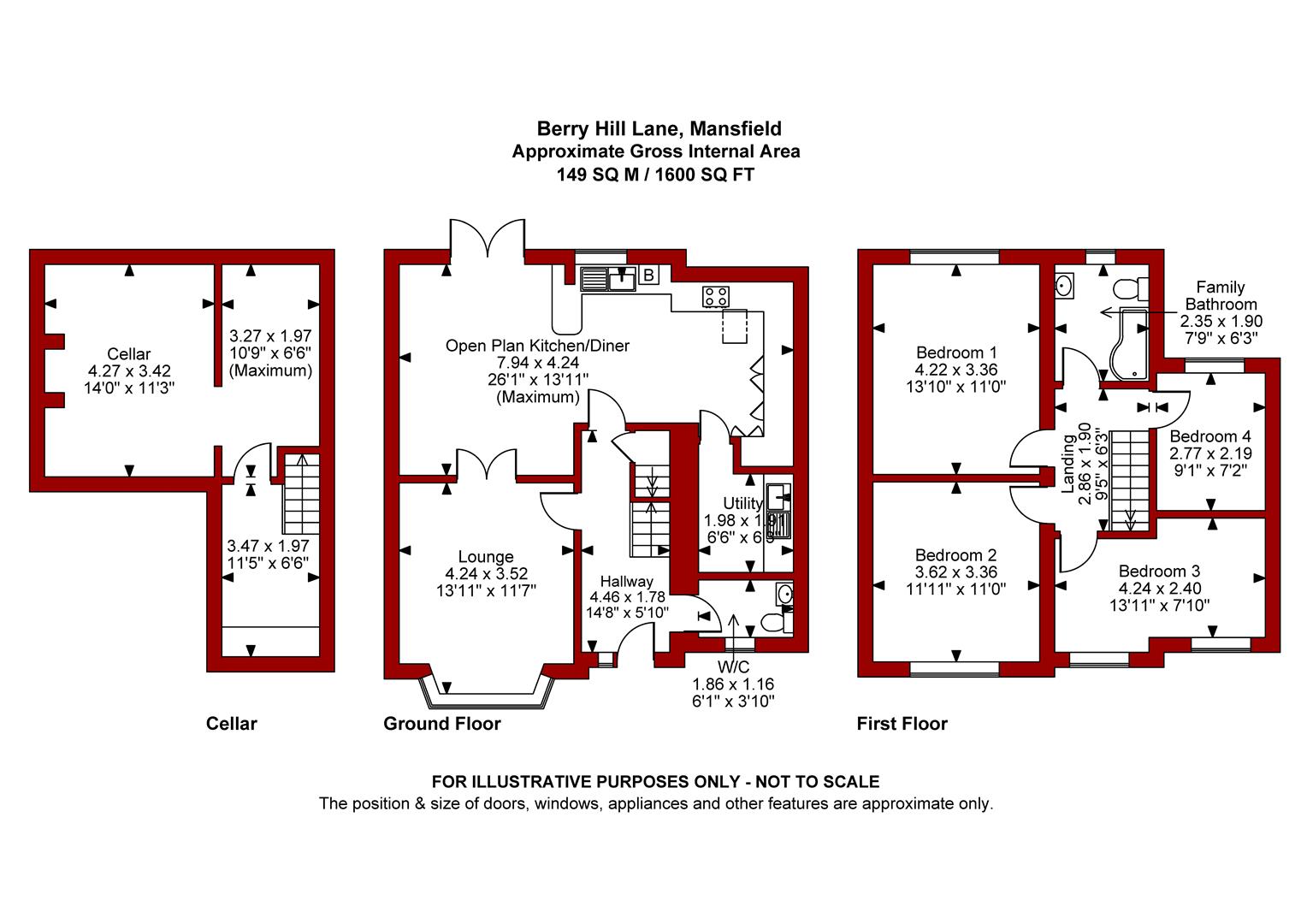 The property provides a spacious layout of living accommodation ideal for families extending to circa 1,600 sq ft to include a useful cellar. The ground floor comprises an entrance hall with access to the cellar, downstairs WC, separate lounge, open plan kitchen/diner and a utility. The first floor landing leads to four bedrooms and a fully tiled family bathroom. The property has modern fixtures and fittings throughout, neutral decor and flooring, gas central heating (combi boiler) and UPVC double glazing.