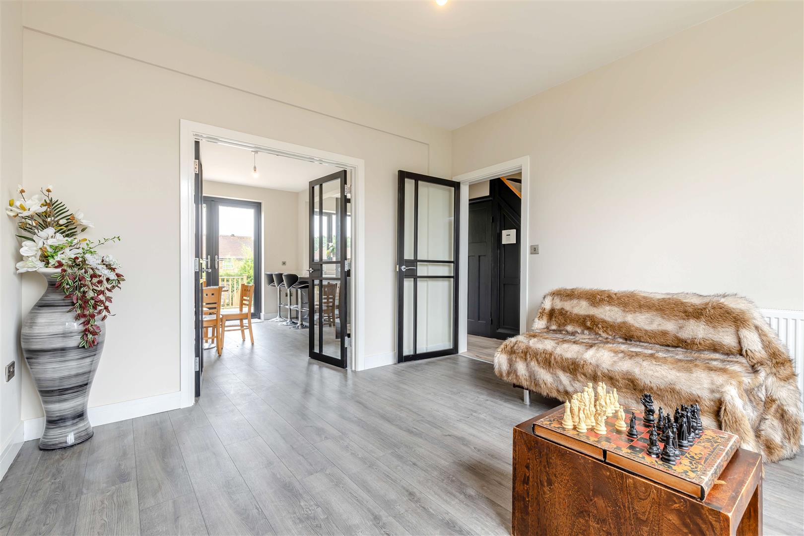 Lounge - 4.22m into bay x 3.51m (13'10" into bay x 11'6") - With radiator, laminate floor, double glazed bay window to the front elevation and double doors opening to: