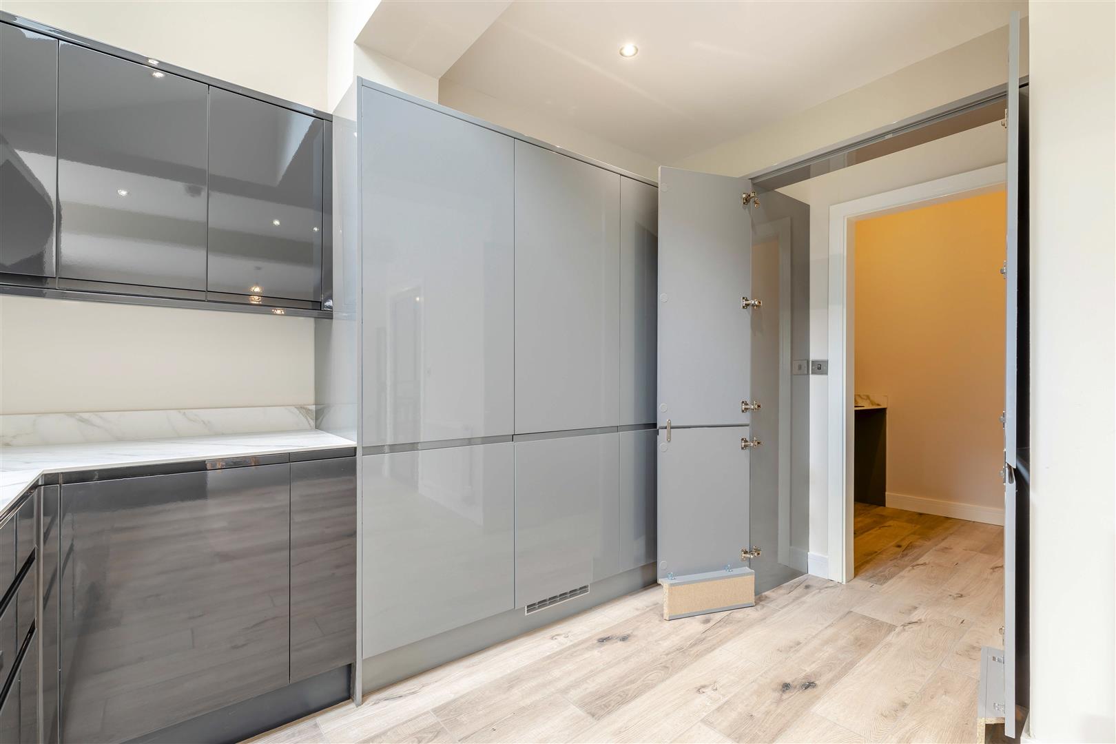 Utility - 1.96m x 1.96m (6'5" x 6'5") - Having modern high gloss wall cupboards and a single base unit, marble effect work surfaces and an inset sink with drainer and black matte swan-neck mixer tap. Space and plumbing for a washing machine and tumble dryer. Tiled floor and radiator.