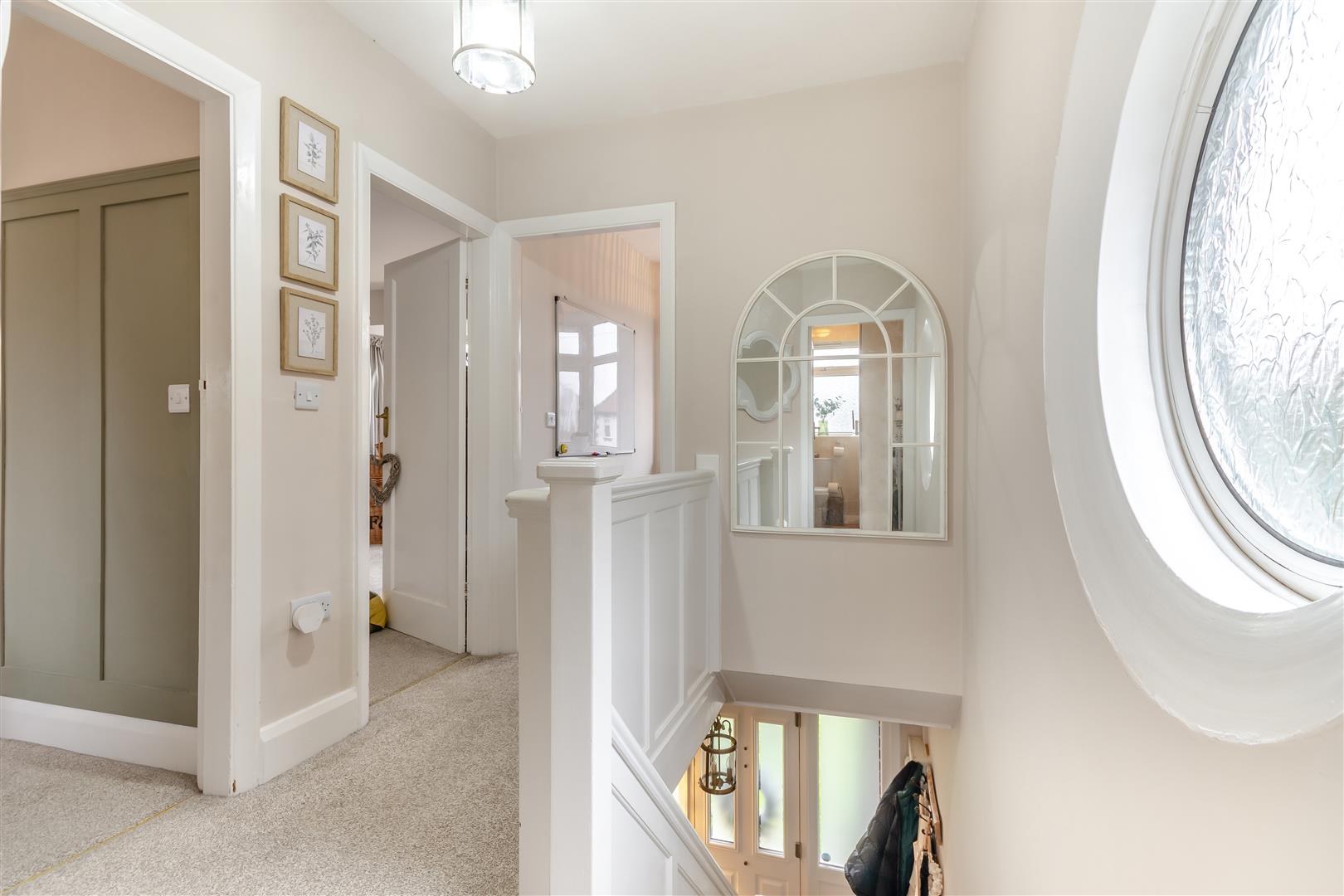 First Floor Landing - 2.74m max x 2.03m (9'0" max x 6'8") - Having a feature circular obscure double glazed window to the side elevation.
