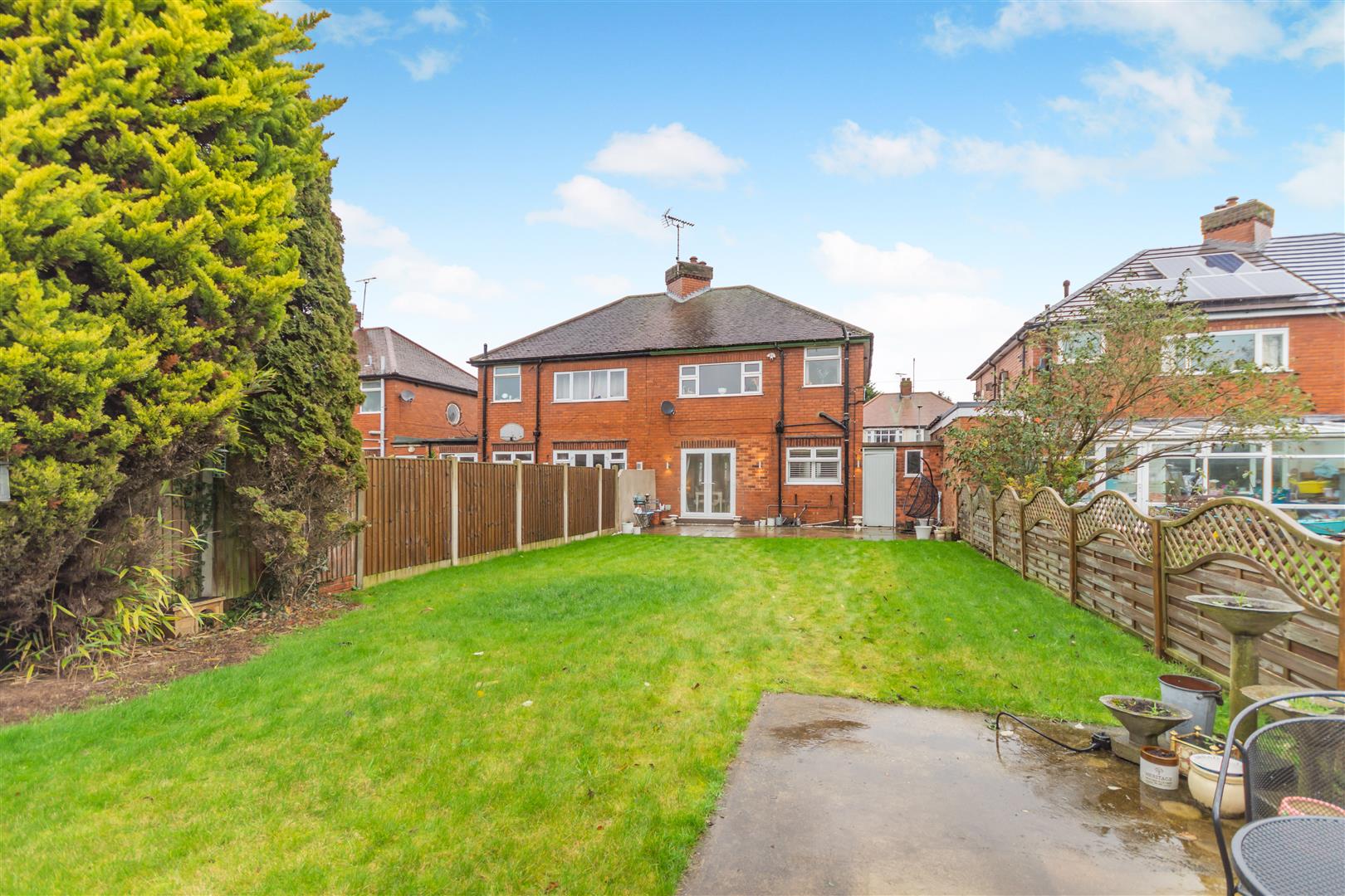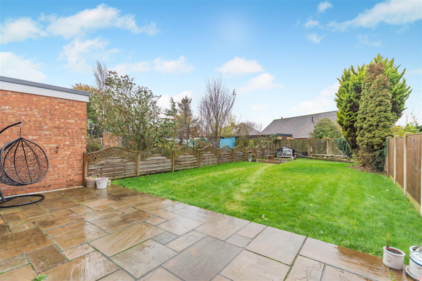 Outside - The property stands back from the road behind a low walled frontage. There is a driveway adjacent to a front garden laid to lawn. A door to the side of the house provides access to an enclosed outbuilding storage area with access to two stores, one with plumbing for a washing machine, and a door at the end leads through to the rear garden. To the rear of the property, there is a good sized, south facing garden featuring a sandstone patio which extends across the full width of the property. Beyond here, there is a lawn and further hardstanding area at the end of the garden.