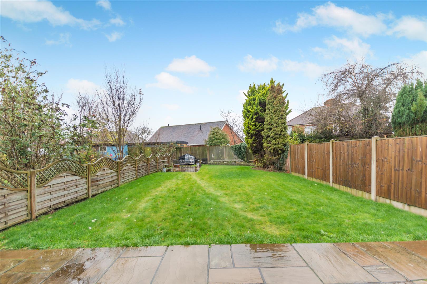 Bathroom - 2.69m max x 2.03m (8'10" max x 6'8") - Having a modern four piece white suite with chrome fittings comprising a panelled bath with mixer tap. Separate tiled shower cubicle with rainfall shower plus additional shower handset. Pedestal wash hand basin with mixer tap. Low flush WC. Chrome heated towel rail, obscure double glazed window to the rear elevation and cupboard housing the Worcester Bosch combi boiler.