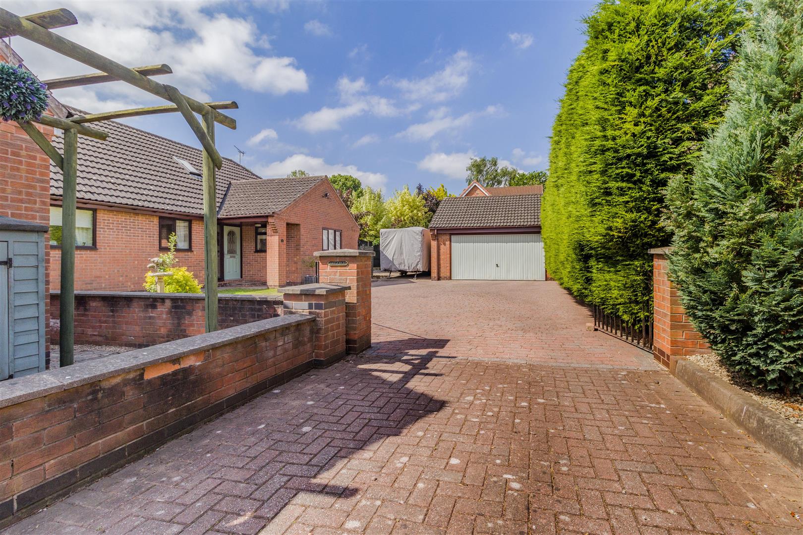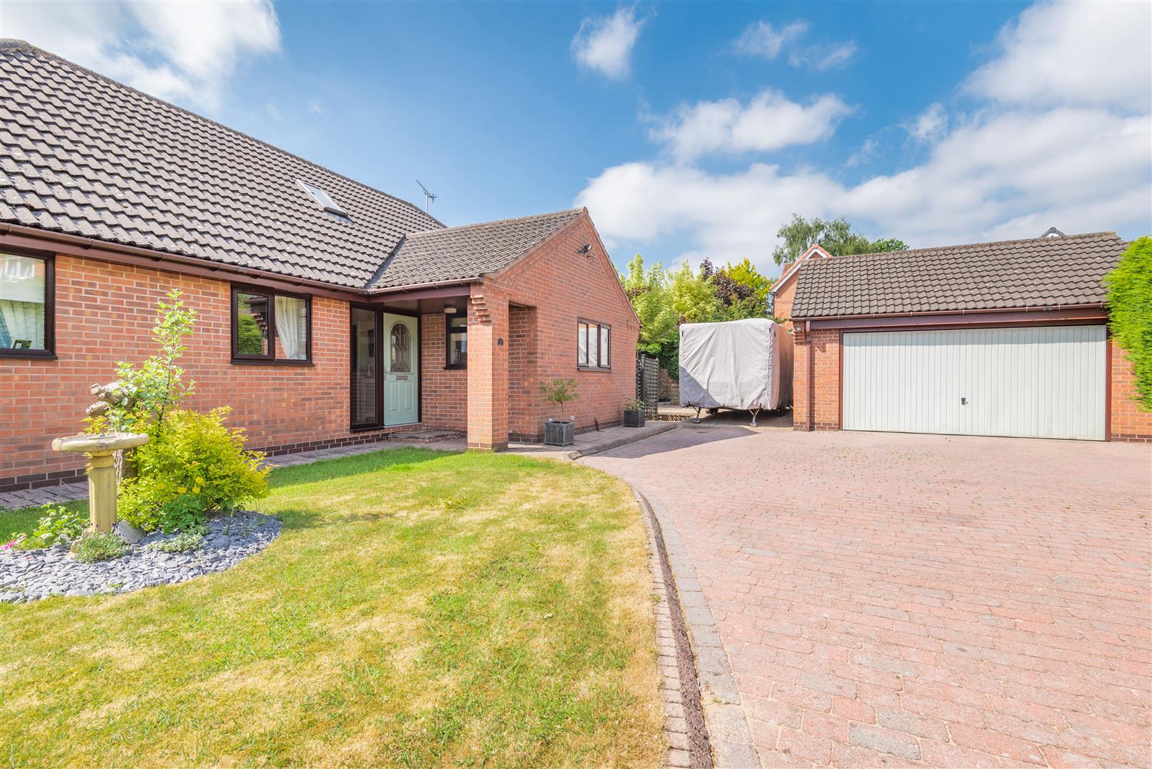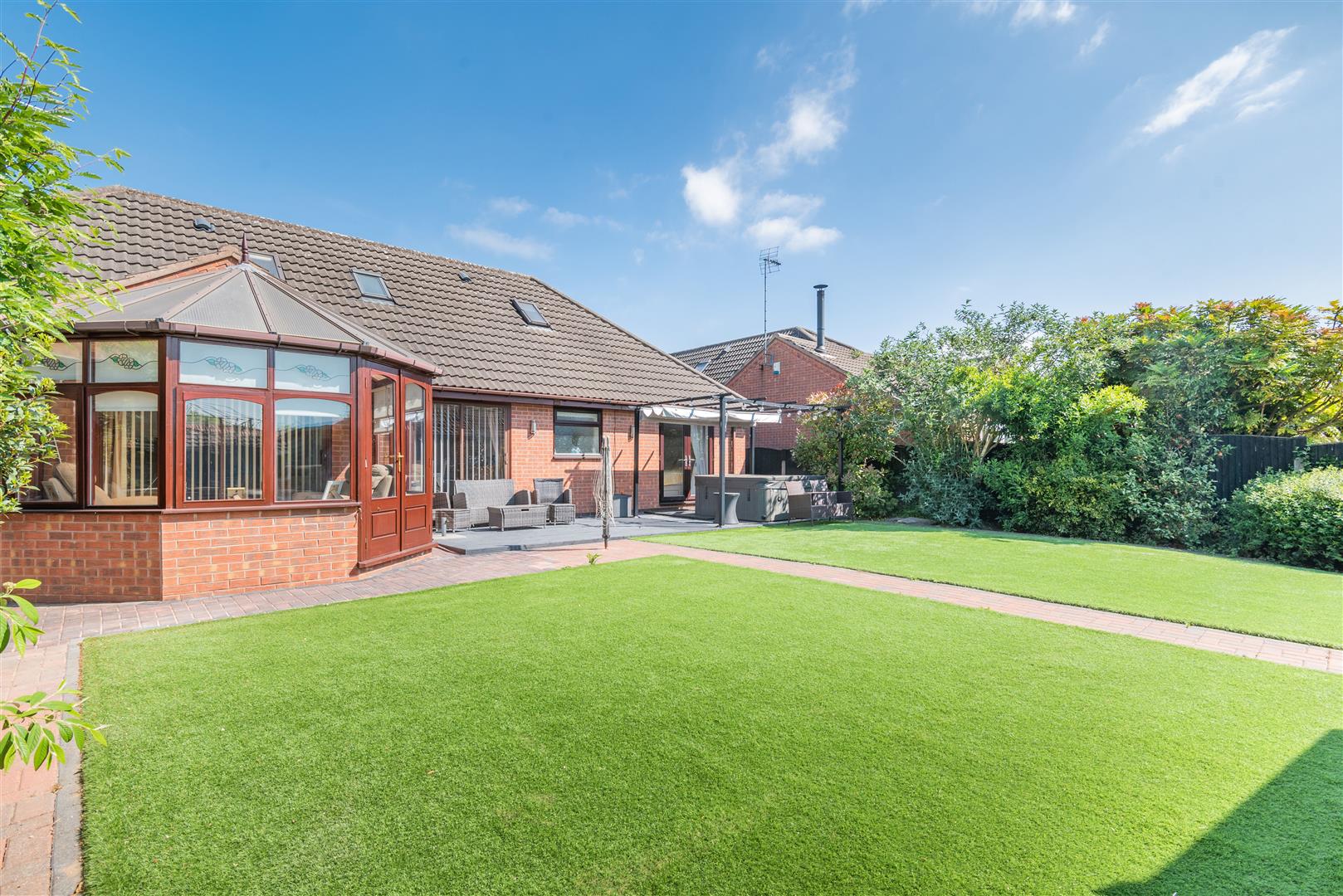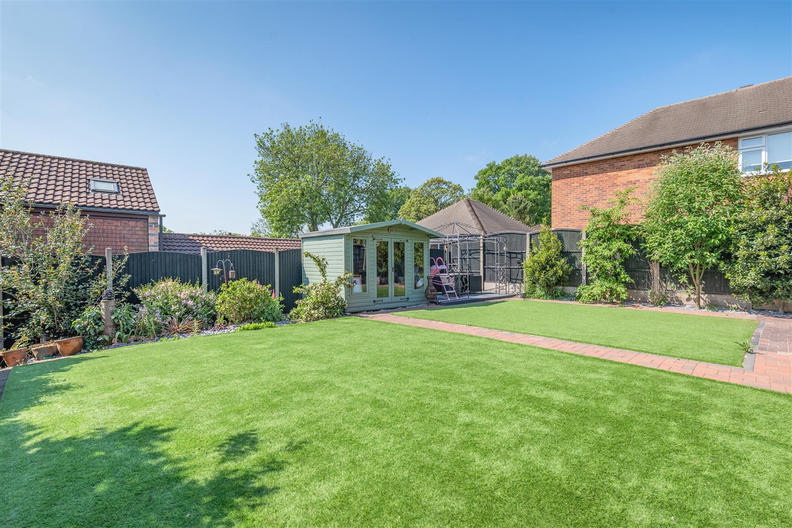 Outside - The property occupies a private position set back and hidden from the main Mill Court cul-de-sac, accessed by a private and shared gated block paved drive with numbers 1 & 2 Mill Court. Number 3 stands at the end of the drive with a good sized block paved driveway with turning space and a detached double garage. The front garden is mainly laid to lawn, and a paved pathway leads to the main entrance door and to the side of the property. Behind the garage is a useful additional garage which is a great storage facility with a up and over garage door. There is also a substantial paved patio area to the side of the garage which is big enough to house a caravan. Beyond here, a gate leads to a side pathway leading to the rear garden. To the rear of the property, there is a wonderful, south facing, low maintenance, landscaped garden. There is a large decked patio with double power point which extends across the rear of the property. A block paved pathway extends to the side, and a central block paved path either side of artificial lawns lead to a summerhouse and further decked patio area. There are borders to each side and at the end of the garden with mature plants and shrubs.
