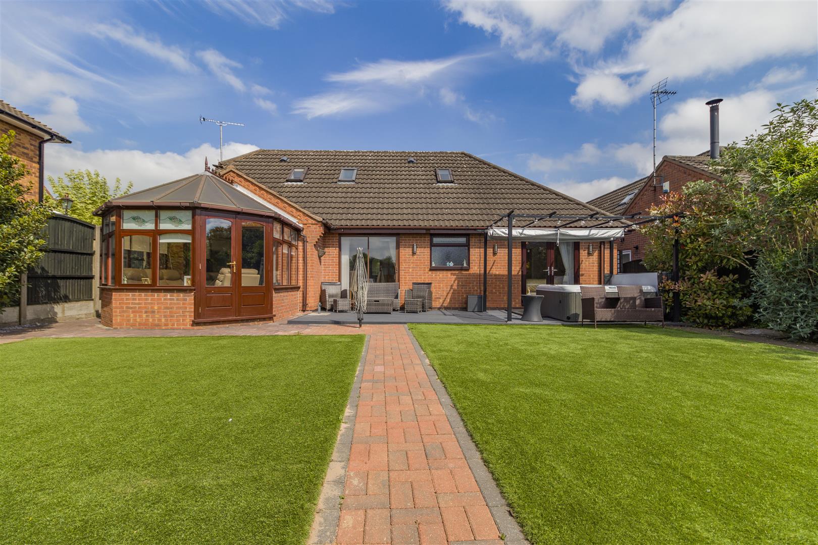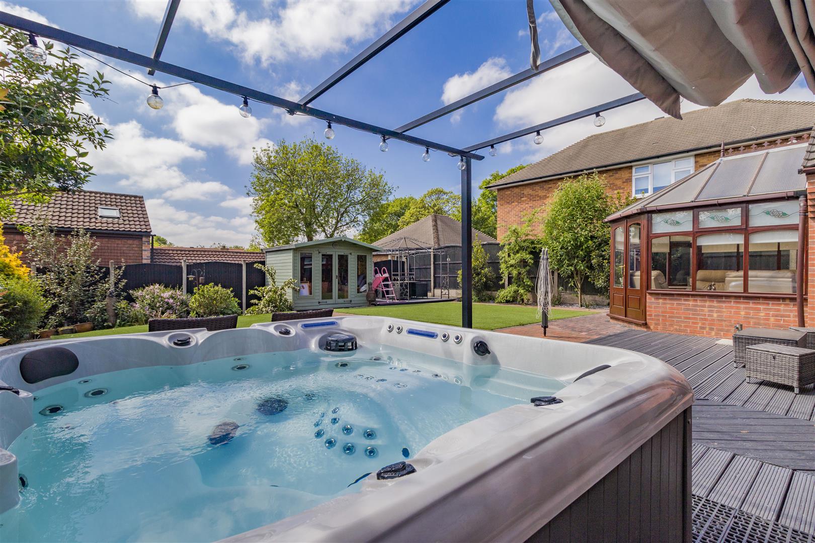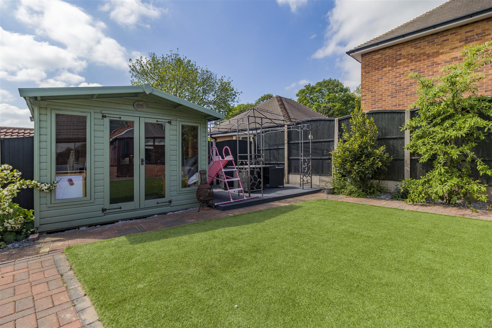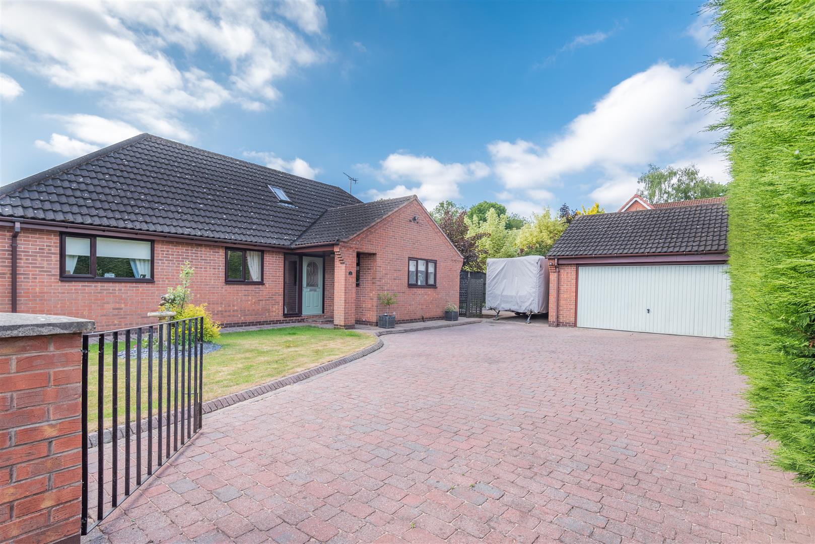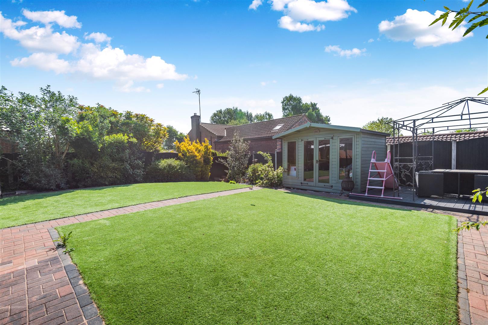 Outside - The property occupies a private position set back and hidden from the main Mill Court cul-de-sac, accessed by a private and shared gated block paved drive with numbers 1 & 2 Mill Court. Number 3 stands at the end of the drive with a good sized block paved driveway with turning space and a detached double garage. The front garden is mainly laid to lawn, and a paved pathway leads to the main entrance door and to the side of the property. Behind the garage is a useful additional garage which is a great storage facility with a up and over garage door. There is also a substantial paved patio area to the side of the garage which is big enough to house a caravan. Beyond here, a gate leads to a side pathway leading to the rear garden. To the rear of the property, there is a wonderful, south facing, low maintenance, landscaped garden. There is a large decked patio with double power point which extends across the rear of the property. A block paved pathway extends to the side, and a central block paved path either side of artificial lawns lead to a summerhouse and further decked patio area. There are borders to each side and at the end of the garden with mature plants and shrubs.