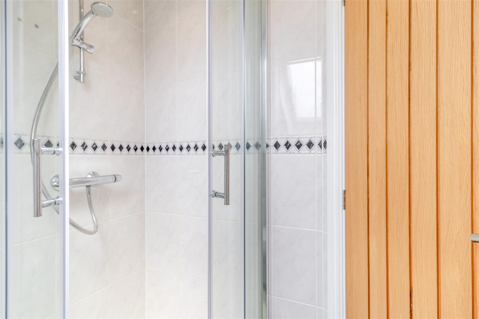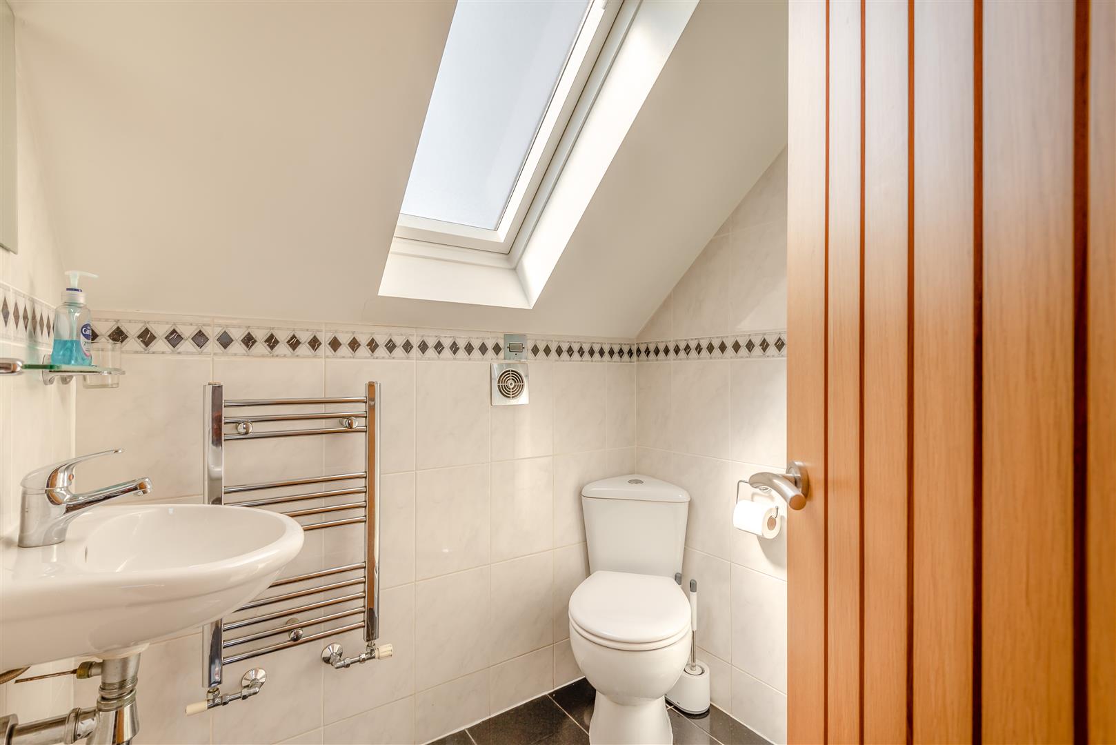 Shower Room - 1.68m x 1.65m (5'6" x 5'5") - Having a modern three piece suite with chrome fittings comprising a corner tiled shower enclosure. Wall hung wash hand basin with mixer tap. Low flush WC. Tiled floor, tiled walls, chrome heated towel rail, extractor fan and obscure glazed velux roof window to the rear elevation.