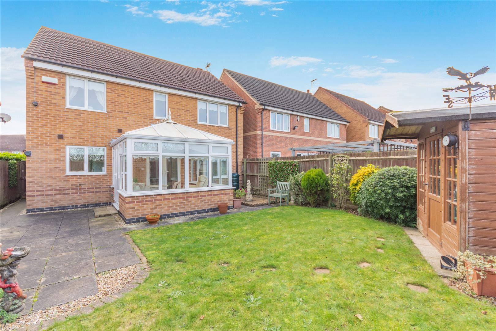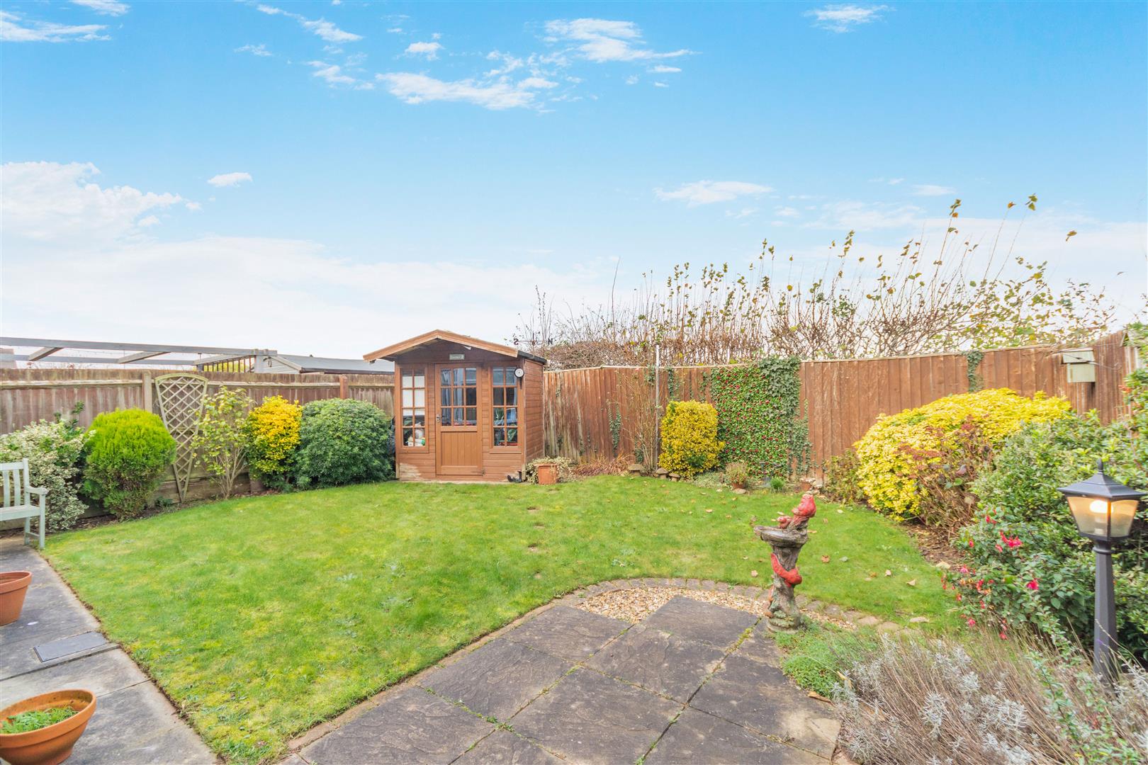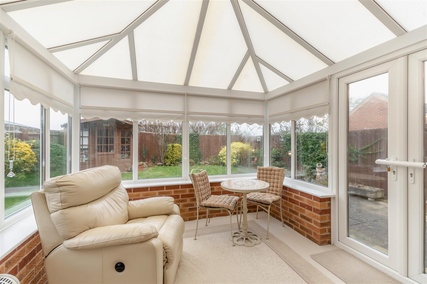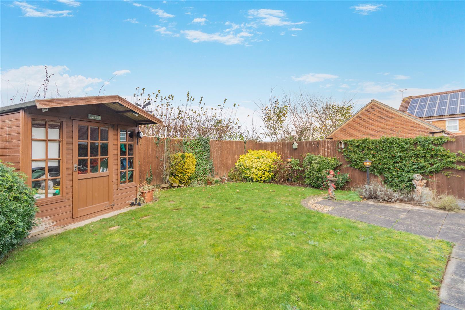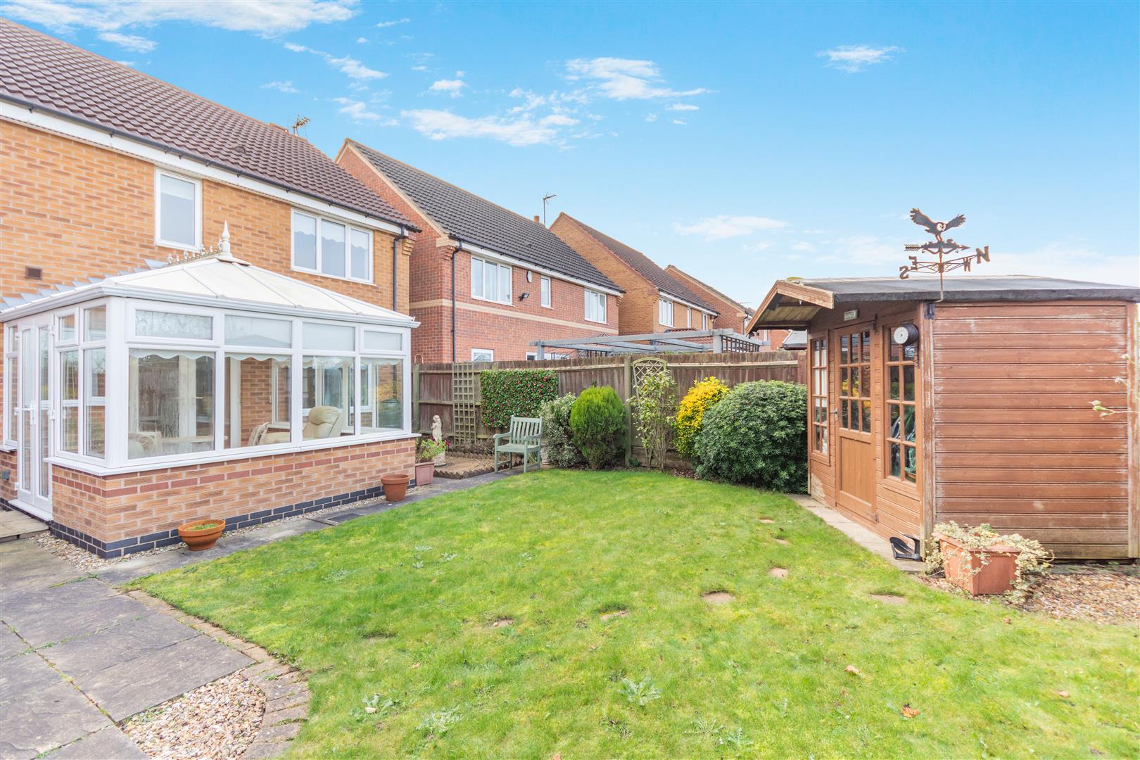 Outside - The property has a double width driveway providing off road parking for two vehicles in front of an integral garage/store. The front garden is laid to lawn with plants and gravel borders each side of the driveway with a pathway on one side with gate at the end leading to the rear garden. To the rear of the property, there is an outside tap and a good sized paved patio which extends to a pathway behind the conservatory to another paved and gravel seating area. Beyond here, there is a lawn, a shed and borders with plants and shrubs.