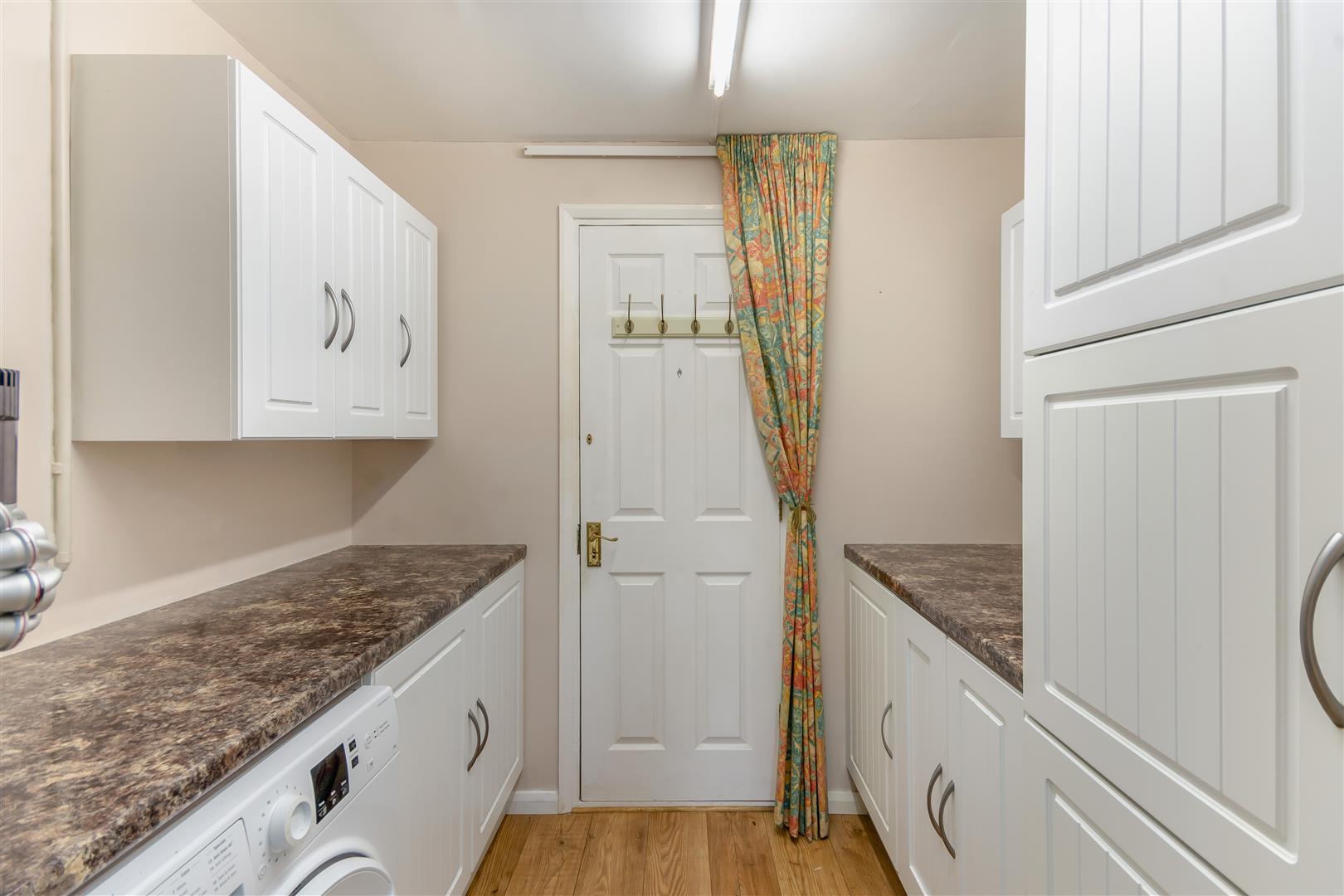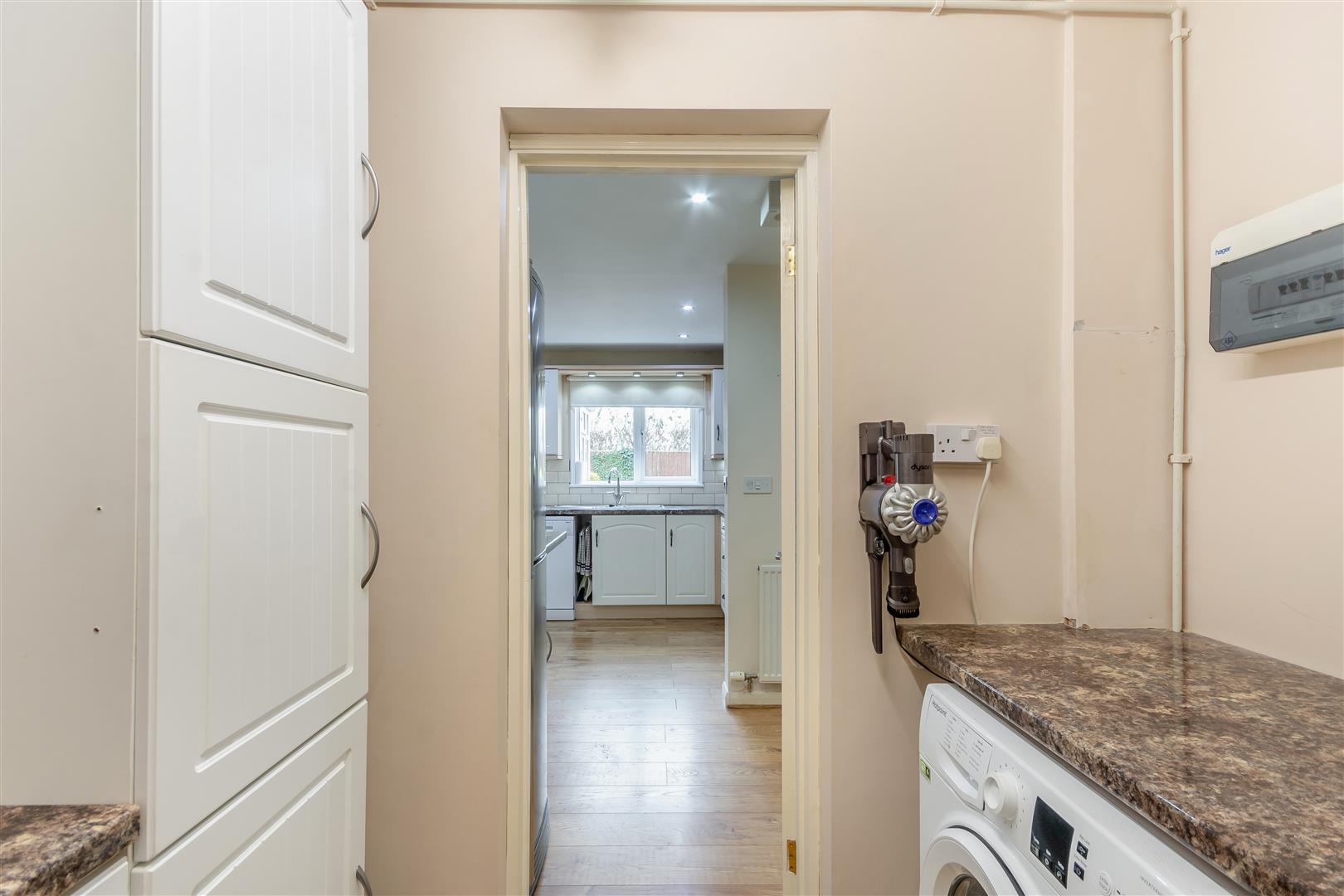 Utility - 2.44m x 1.80m (8'0" x 5'11") - Having wall cupboards, base units and work surfaces. Plumbing and space for a washing machine. Laminate floor, consumer unit and connecting door to a garage store.