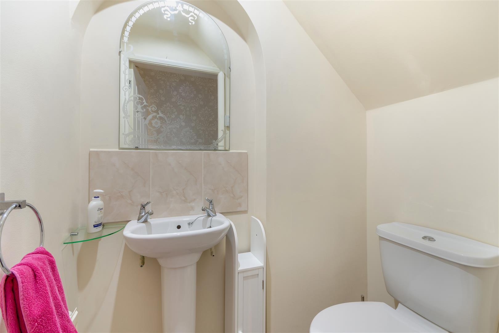 Downstairs Wc - 1.55m x 1.02m (5'1" x 3'4") - Having a low flush WC. Pedestal wash hand basin and tiled splashbacks. Radiator, extractor fan and ceiling spotlight.