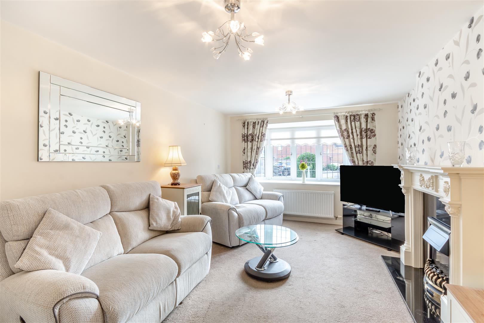 Lounge - 4.78m x 3.33m (15'8" x 10'11") - Having an electric fire with granite hearth and traditional style surround. Radiator, double glazed window to the front elevation and double doors through to the: